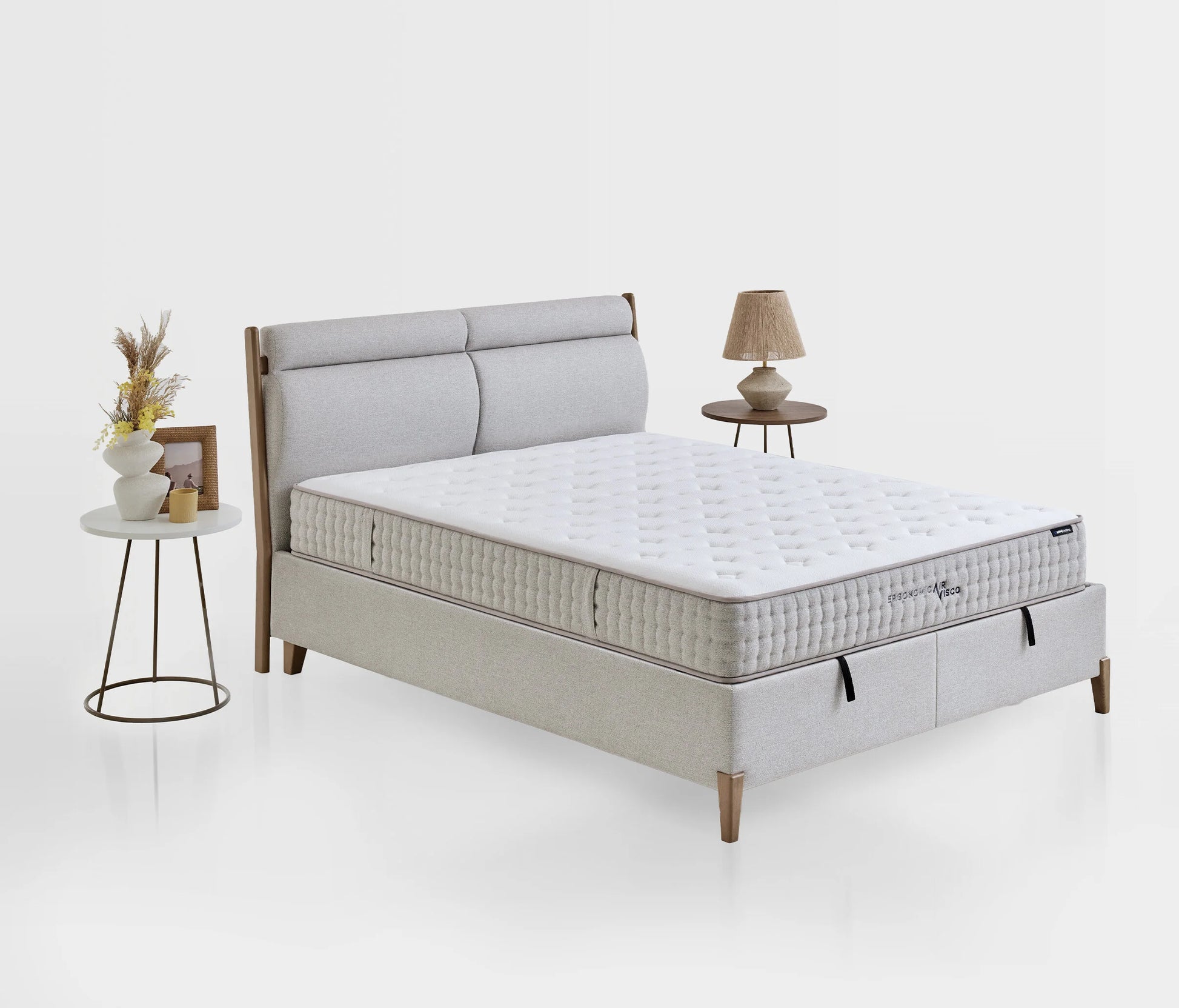 Оборудван с технологии, които перфектно се адаптират към различните телосложения, матракът Ergonomic Air Visco предлага идеална температура за сън през лятото и зимата благодарение на двустранната употреба. Вискоеластичната мемори пяна с технология с отворени клетки помага на мускулите да си починат, като осигурява идеална опора на тялото. Като спомага за поддържане на естествената извивка на гръбначния стълб, той помага за намаляване на неволните въртеливи движения по време на сън, като обгръща тялото правилно. Индивидуално пакетираните и независимо работещи пружини се адаптират идеално към всяко тяло и осигуряват правилна опора на гръбначния стълб, като поддържат извивките на тялото. Ice Touch, специална охлаждаща материя на Yataş създава хладна среда за сън. Woolmark® технология подходящ за всички сезони, разпределяйки равномерно топлината със своята чиста вълна Woolmark®.
