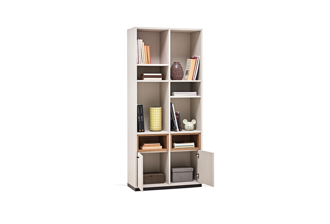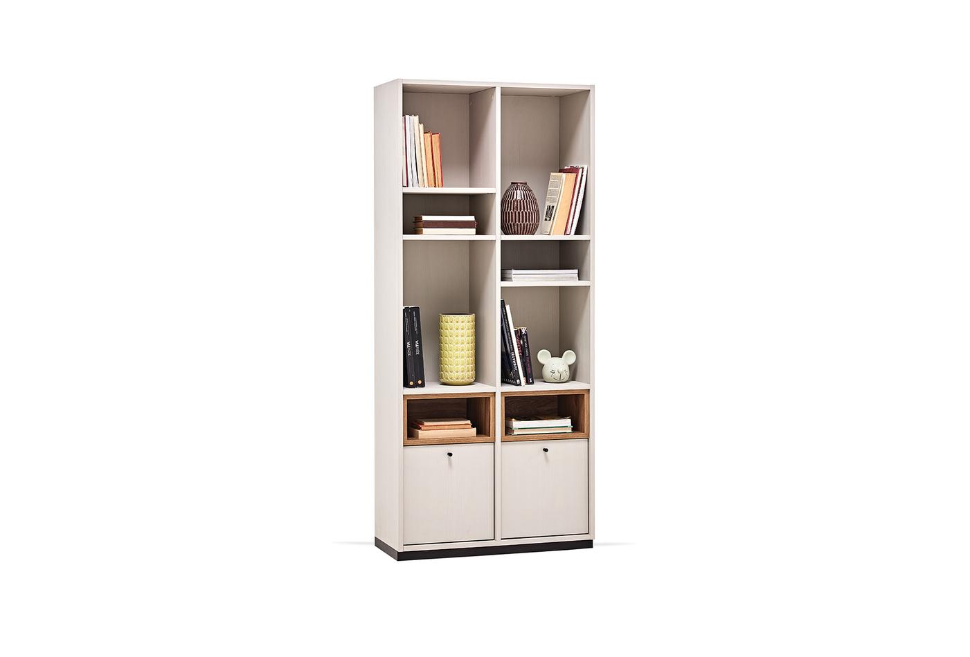 Допълвайки идеално мебелите с естествения си вид, библиотеката предлага стилно място за съхранение с динамичния си дизайн и дълбоко текстурирана повърхност на своите многофункционални отворени рафтове. Осигурява подходящо приложение за различни жилищни пространства със своите размери, които придават просторен вид на декорацията и се адаптират към почти всяка мебел. Имайки квалификацията да отговори на нуждите на младите, предоставя възможност за създаване на минимална и иновативна атмосфера. Улавяйки уникална хармония от комбинацията между цветовете светъл орех и крем се съчетава с дизайна на металната матова черна дръжка.