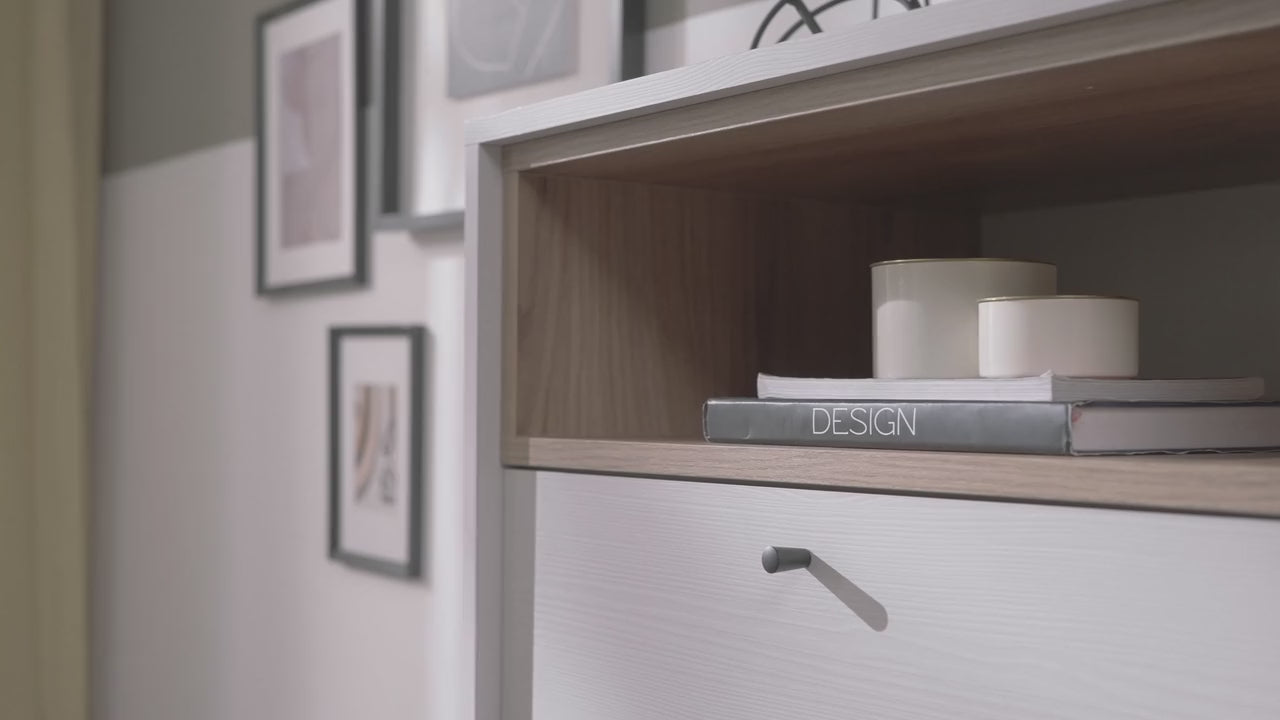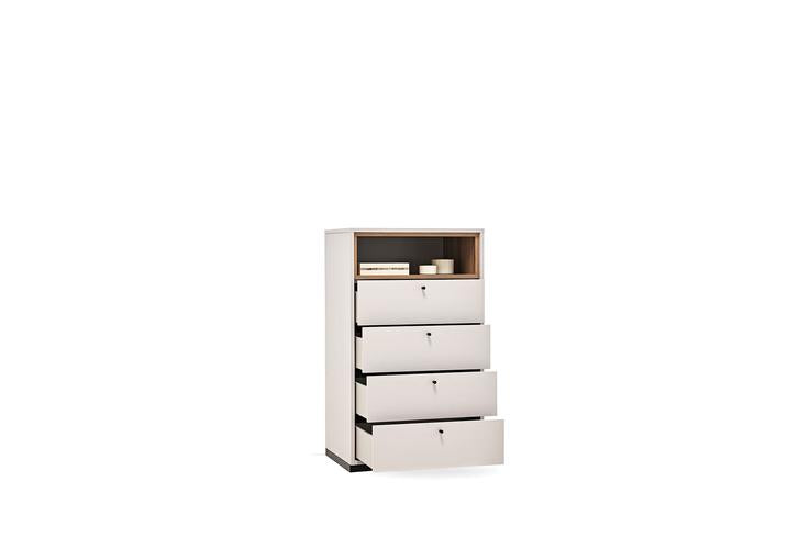 Комбинирайки естественост и иновативни детайли на декорацията, внася жизненост в пространствата. Използването на повърхност с дълбока текстура, където естествеността е на преден план, и метални матово черни дръжки добавят семпла и елегантна атмосфера към интериора. Със своя дизайн, отразяващ модерния индустриален стил, допълва жилищните пространства по най-добрия начин.