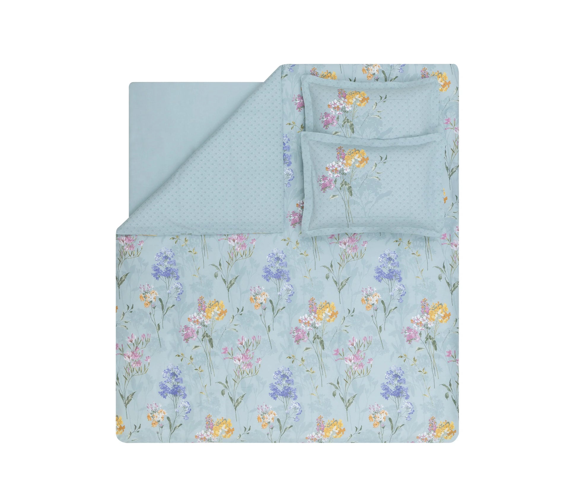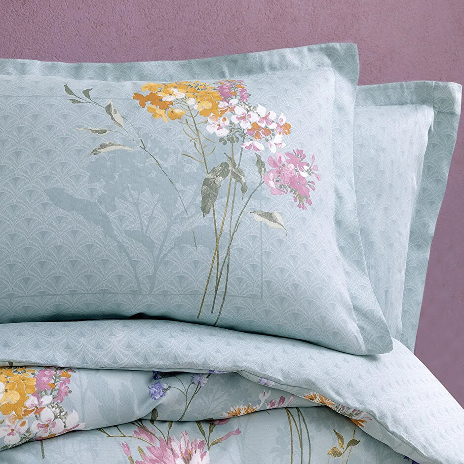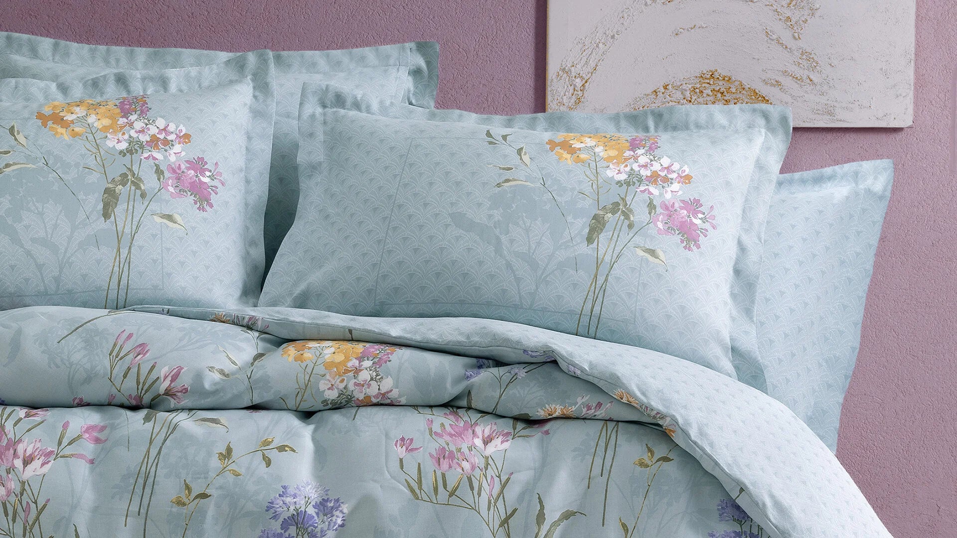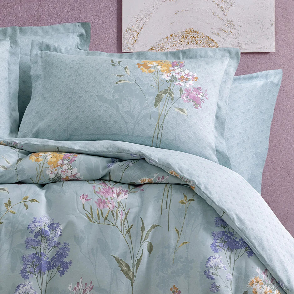 Нежната сатенова текстура предлага изключително меко усещане, като същевременно придава на помещението едновременно декоративна елегантност и уют. А фините детайли по възглваниците носят свеж пролетен дух в интериора.