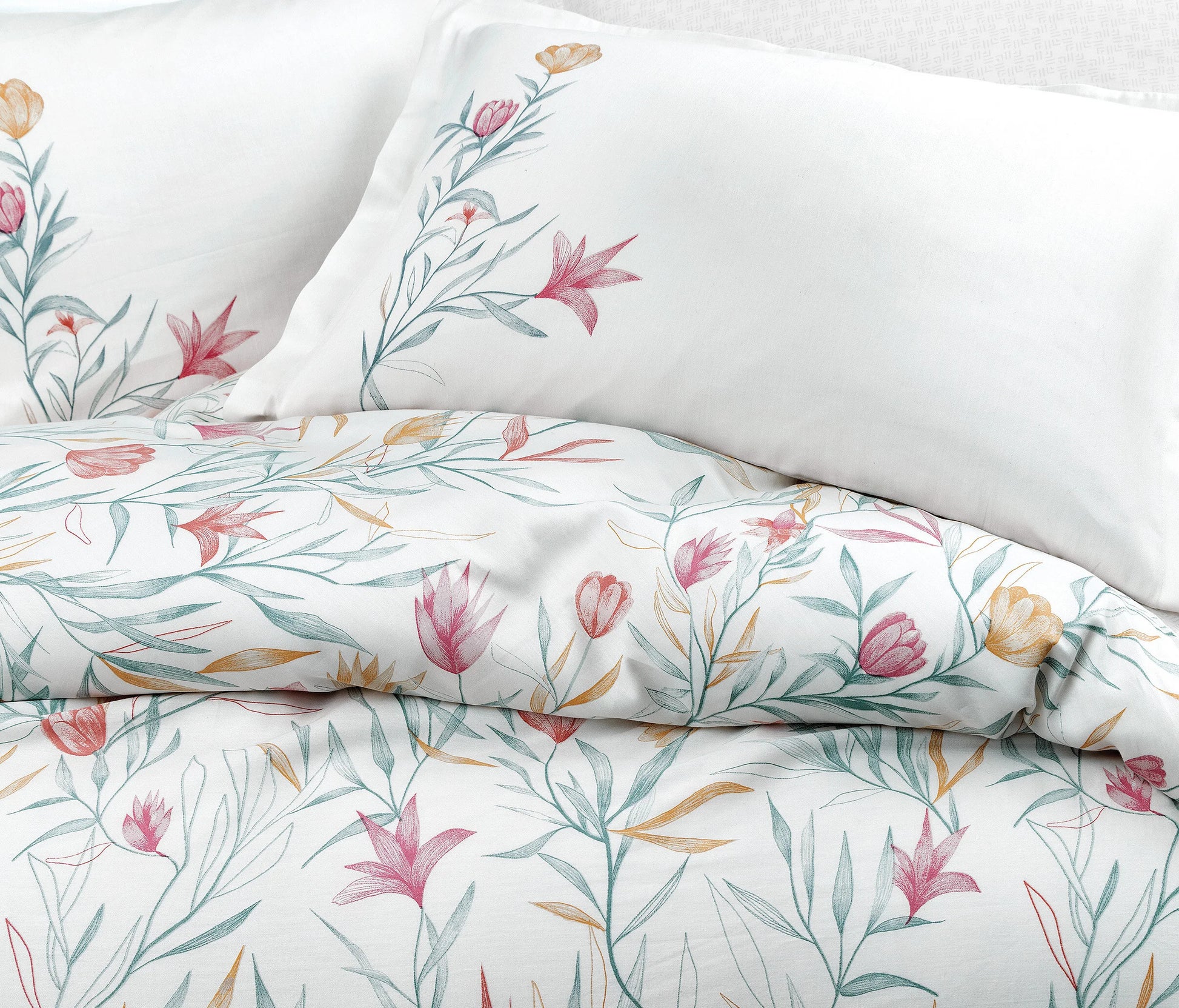 Внася лекото докосване на слънцето в жилищните пространства с елегантни флорални мотиви, вдъхновени от природата.Дишащи естествени влакна, 100% памук, комфортно обгръщат тялото със сладка прохлада, като балансират телесната температура през нощта.