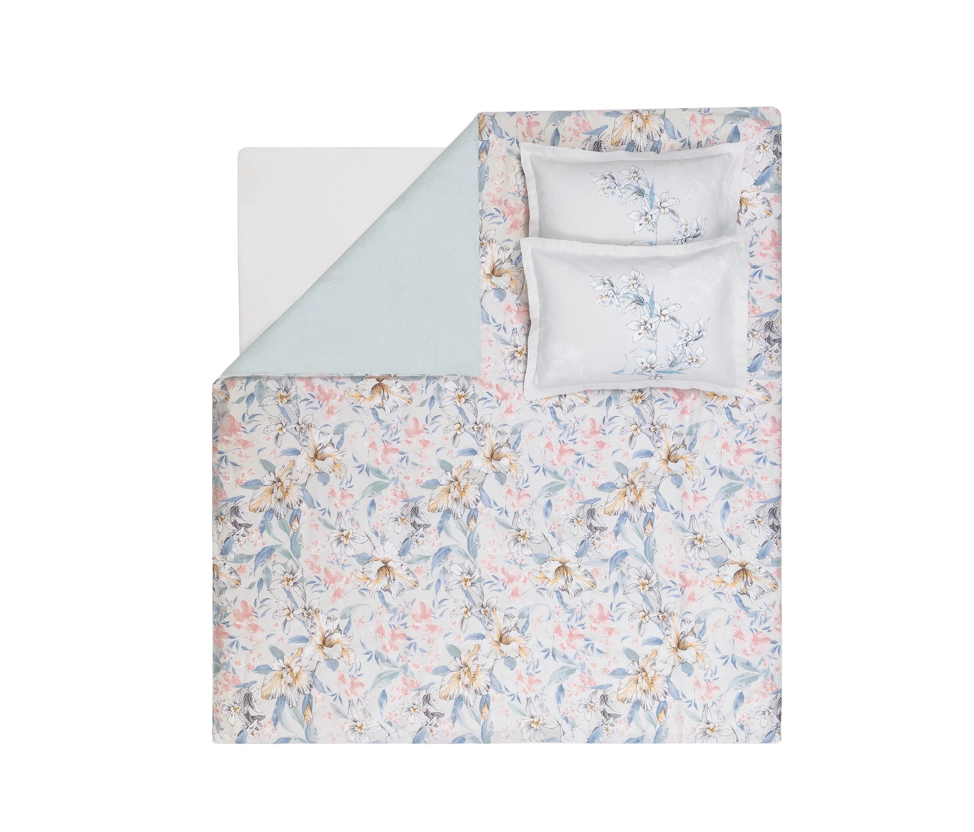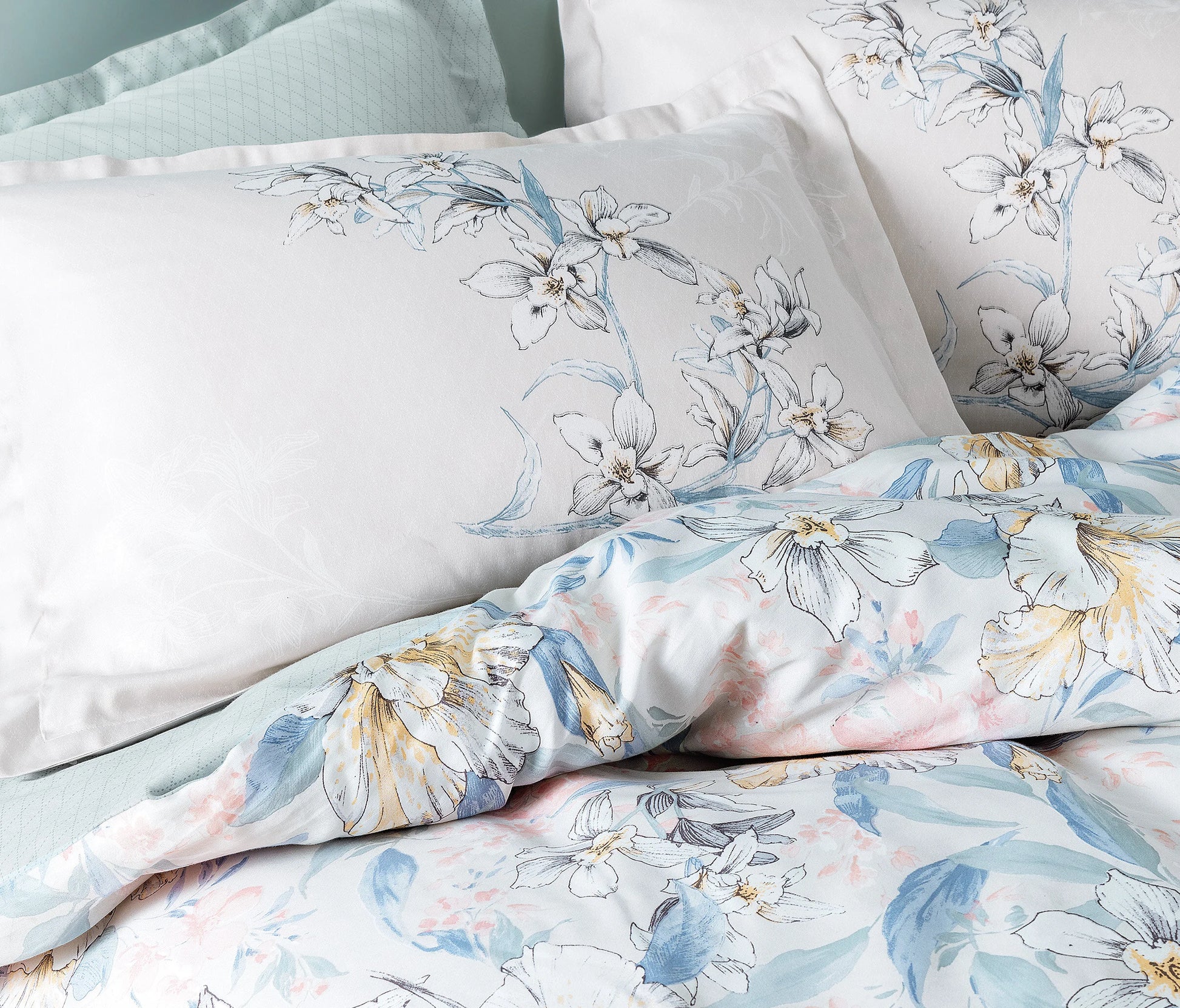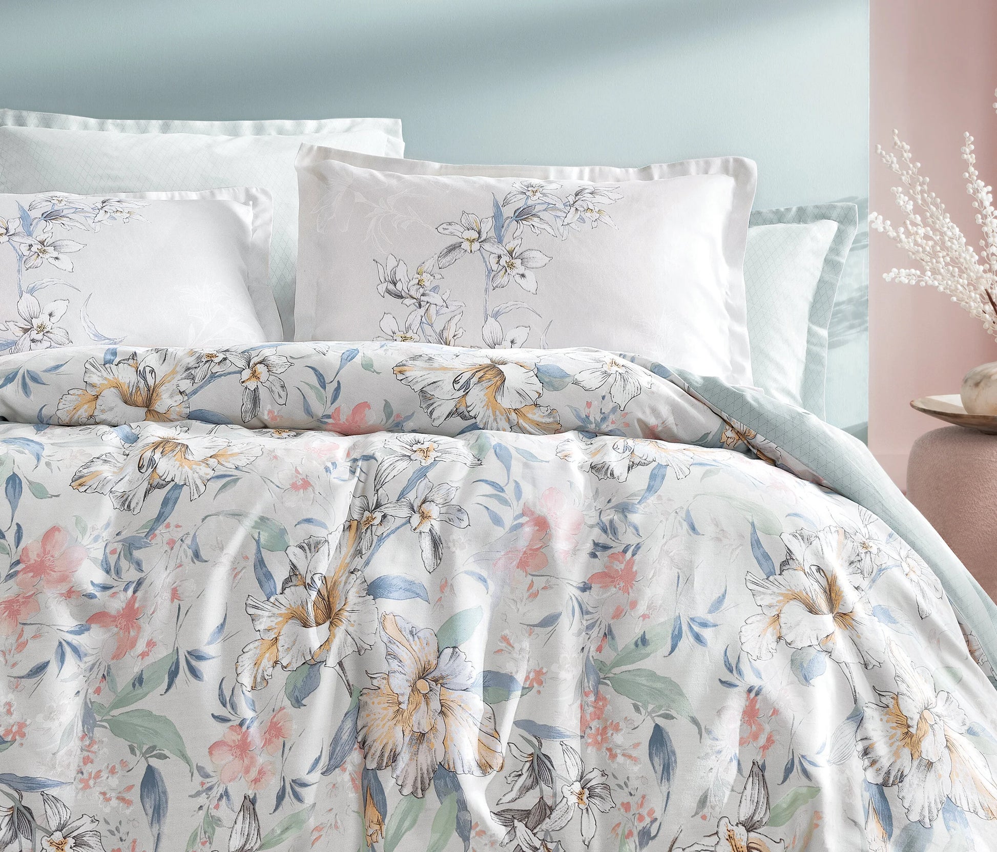 Украсен с нежни пастелни нюанси, елегантни флорални мотиви и фини текстури, придава изтънчен и стил на всеки спален интериьор. Изработен от 100% натурален памучен сатен, той предлага лъскава и гладка повърхност. Нежното му усещане издига преживяването на съня на съвсем ново ниво.