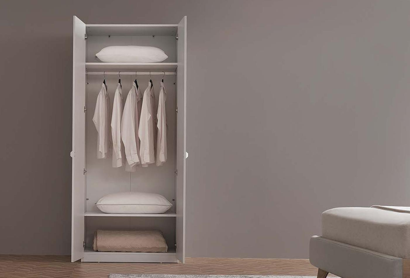 Внася семпла елегантност в декорацията на вашата спалня със своята елегантност, скрита във функционални детайли и метални бели дръжки. Разработен за безшумна употреба, дизайнът подчертава спокойствието и тишината, които държите да защитите във вашата спалня. Отразявайки простотата на бялото ви помага да създадете модерен стил във вашата спалня. Освен това предлага безопасна употреба със своята самозабавяща се система от панти.