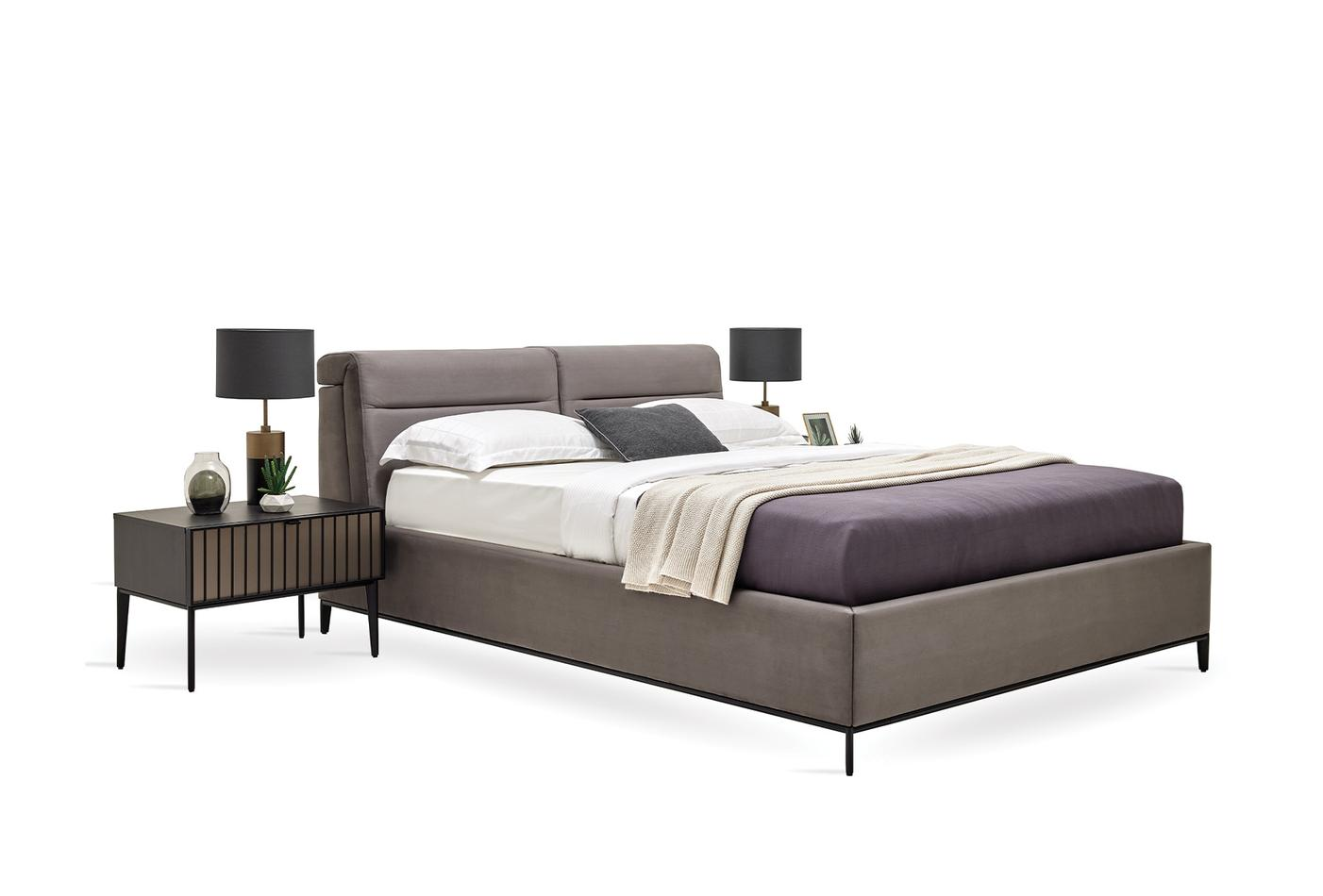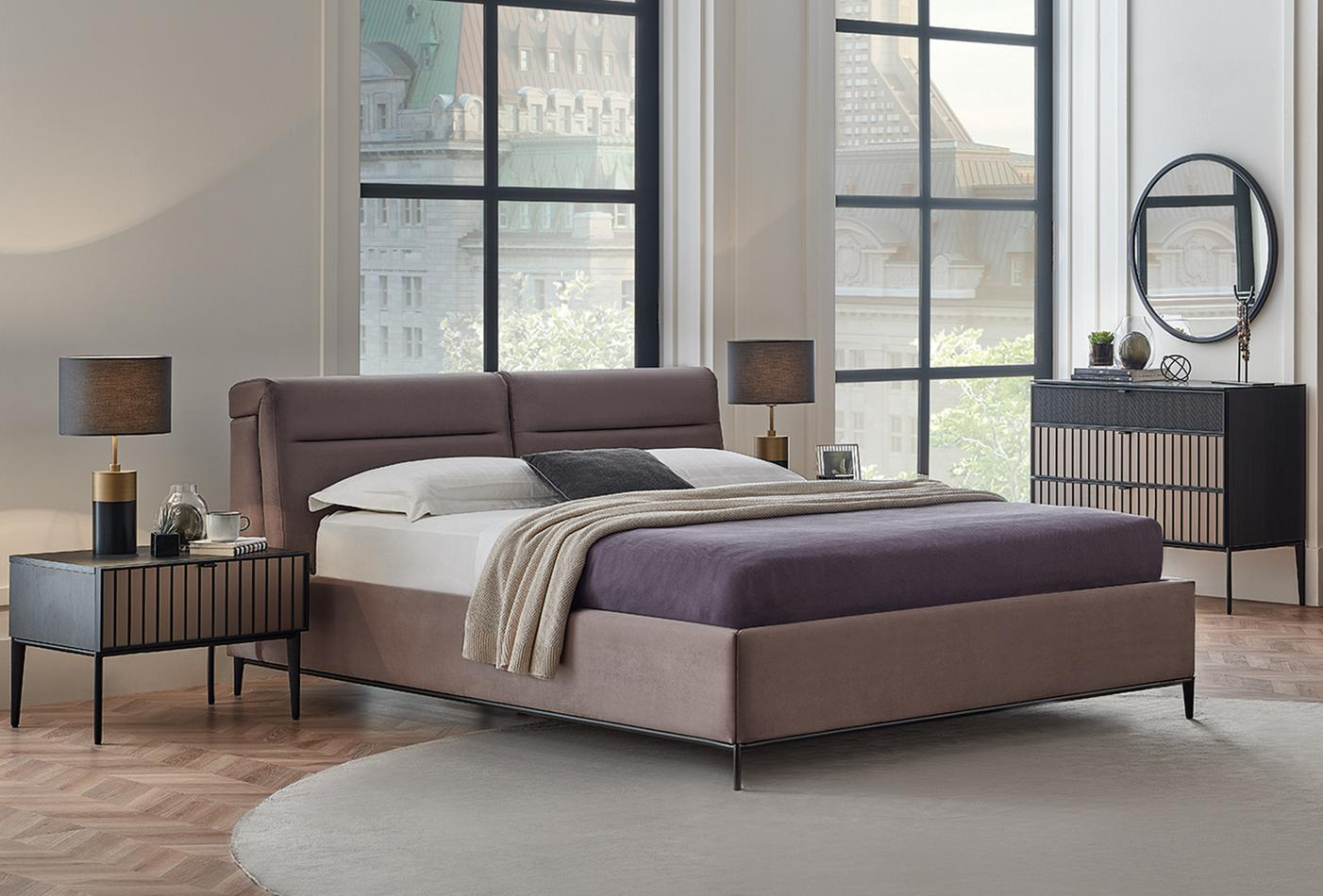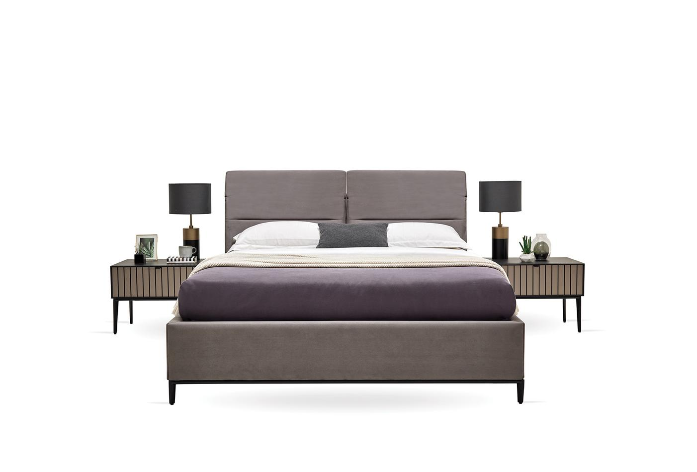 Леглото от колекцията има необичайна функционална табла. Оборудван е с 4-степенен механизъм за регулиране на наклона на таблата, което прави леглото още по-удобно и привлекателно. Краката на леглото са в матово черно, за да паснат на цялата колекция.Със своя модерен и луксозен външен вид ще се впише във всеки интериор.