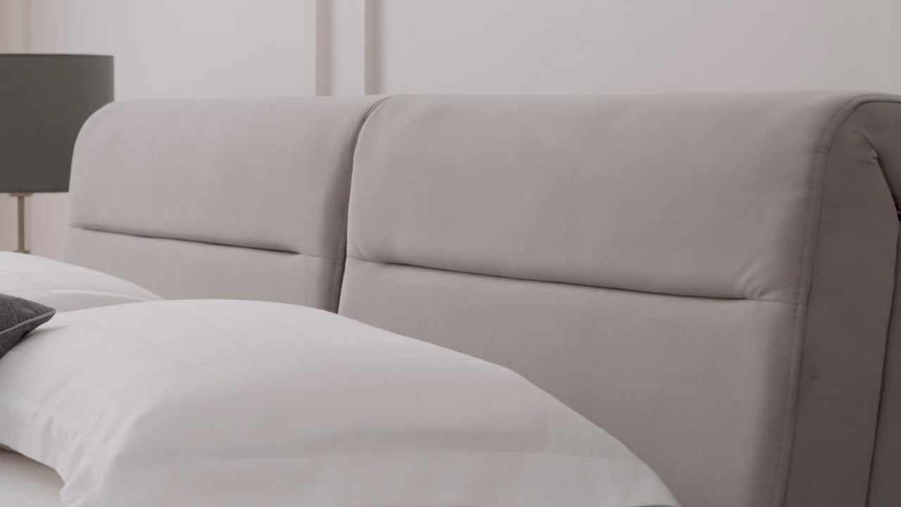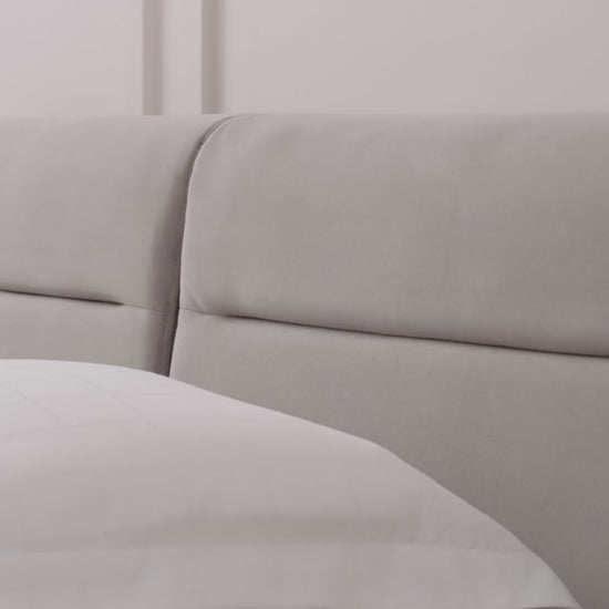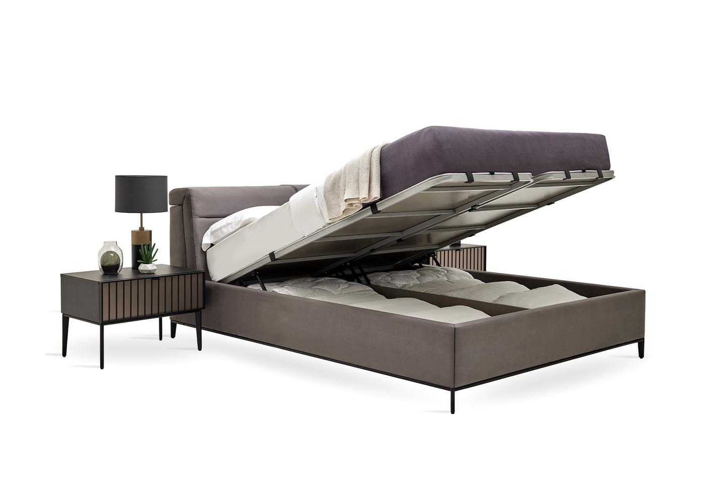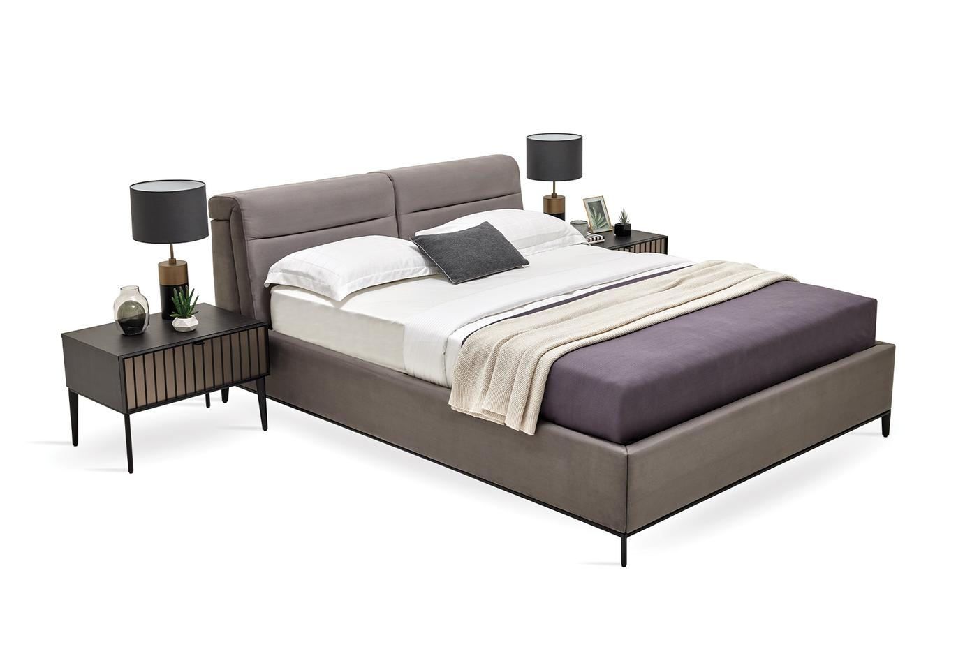 Леглото от колекцията има необичайна функционална табла. Оборудван е с 4-степенен механизъм за регулиране на наклона на таблата, което прави леглото още по-удобно и привлекателно. Краката на леглото са в матово черно, за да паснат на цялата колекция.Със своя модерен и луксозен външен вид ще се впише във всеки интериор.