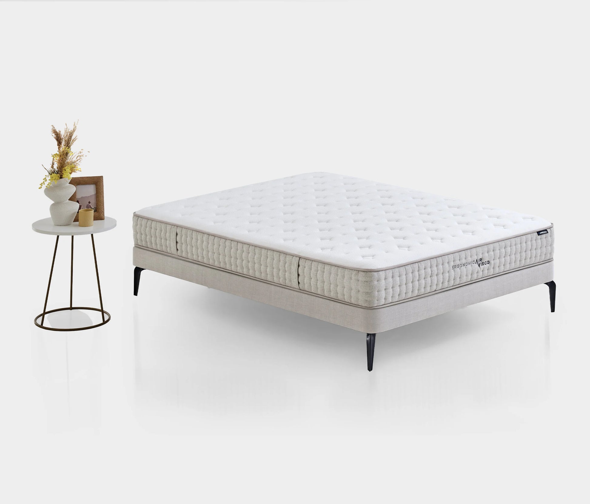 Оборудван с технологии, които перфектно се адаптират към различните телосложения, матракът Ergonomic Air Visco предлага идеална температура за сън през лятото и зимата благодарение на двустранната употреба. Вискоеластичната мемори пяна с технология с отворени клетки помага на мускулите да си починат, като осигурява идеална опора на тялото. Като спомага за поддържане на естествената извивка на гръбначния стълб, той помага за намаляване на неволните въртеливи движения по време на сън, като обгръща тялото правилно. Индивидуално пакетираните и независимо работещи пружини се адаптират идеално към всяко тяло и осигуряват правилна опора на гръбначния стълб, като поддържат извивките на тялото. Ice Touch, специална охлаждаща материя на Yataş създава хладна среда за сън. Woolmark® технология подходящ за всички сезони, разпределяйки равномерно топлината със своята чиста вълна Woolmark®.