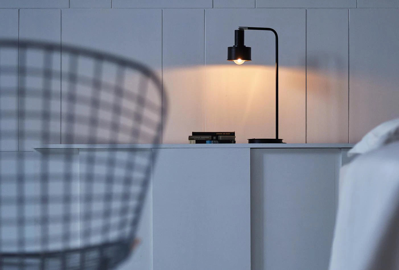 Създава стилен дизайн чрез съчетаване на черно метално тяло и глава с хромирани детайли. Стилен пример за индустриалния стил, който се откроява в съвременните декоративни решения.