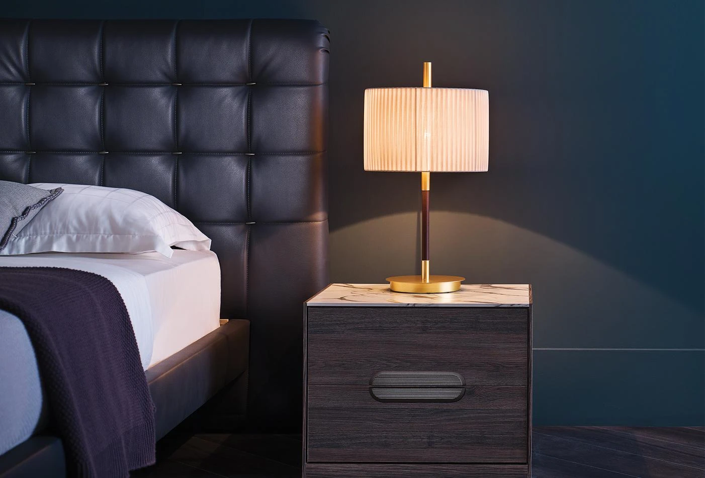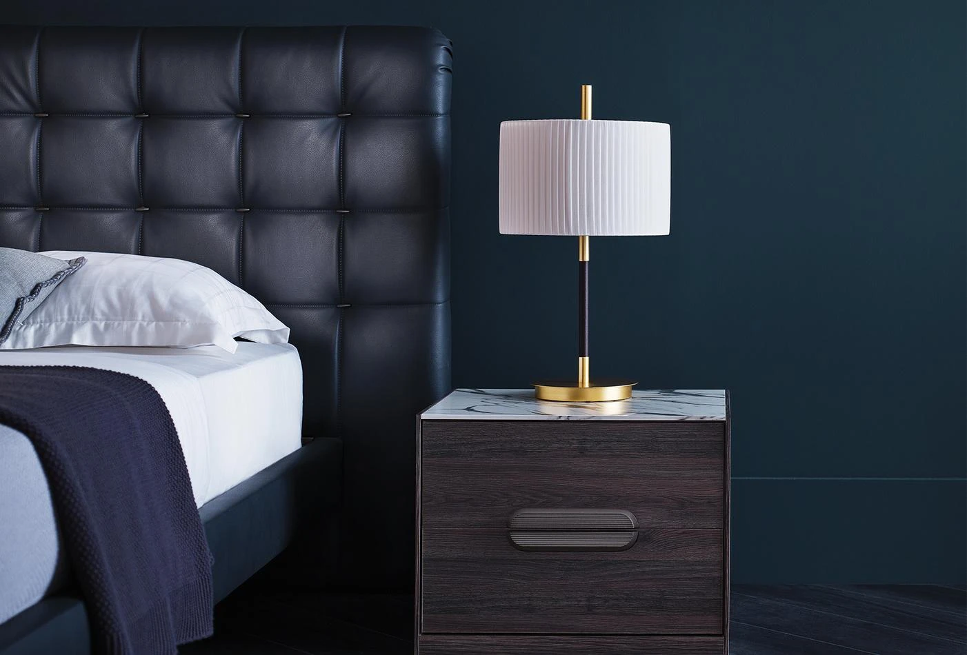Има модерен дизайн с кремав цвят, плисирана капачка и кожени детайли върху боядисаното в златно тяло.