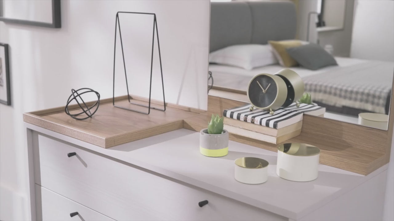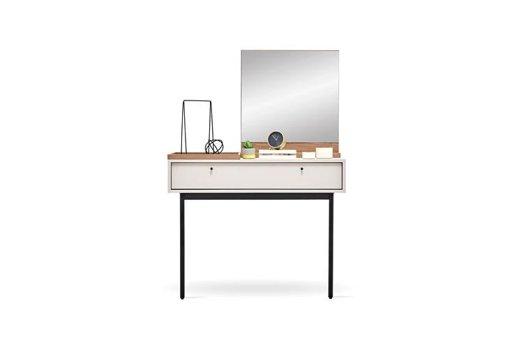 Предлага възможност да се използва както на масата, така и като се окачи на стената. Правоъгълното естествено огледало в дизайна добавя декоративна атмосфера със своята елегантност.