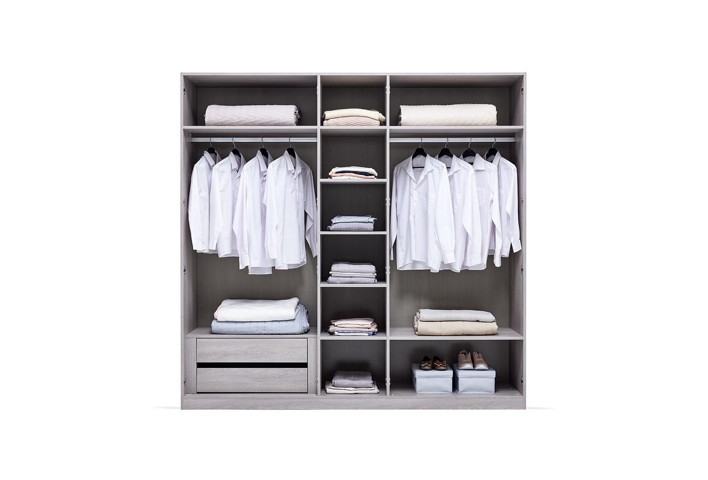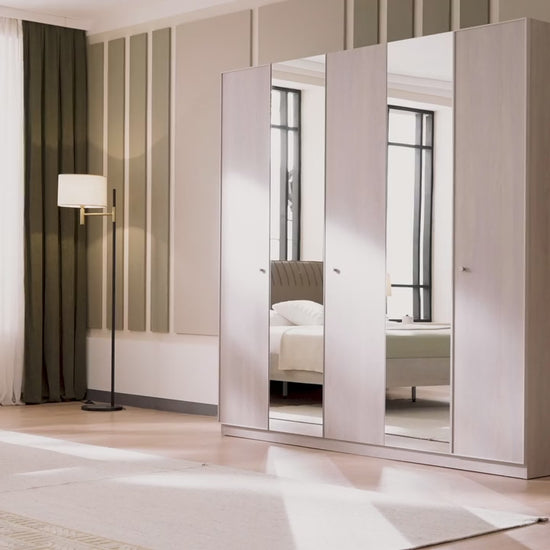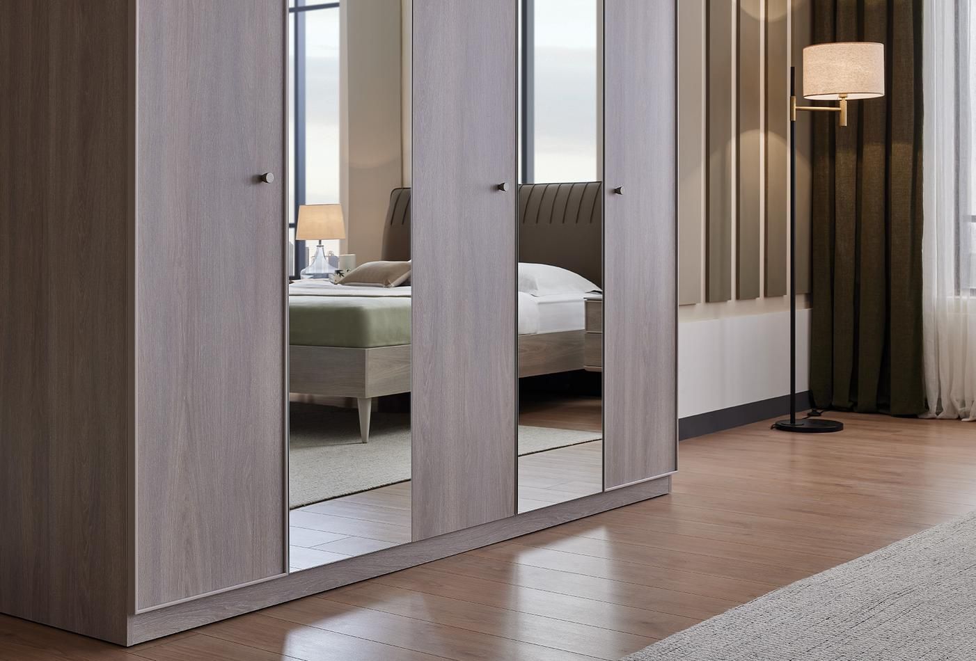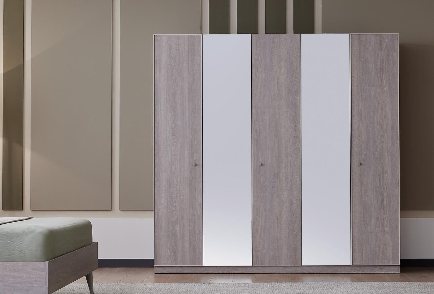 Отличаващ се с минималистичен дизайн добавя модерен щрих, като придава светъл и приветлив вид на пространствата, в които се намира. Проектиран в комбинация от светъл дъб и светло бежово. Огледална апликация в естествен цвят върху вратата на шкафа. Внесена система на панти със самозабавяне. Стилен интериор с просторни и удобни места за съхранение.