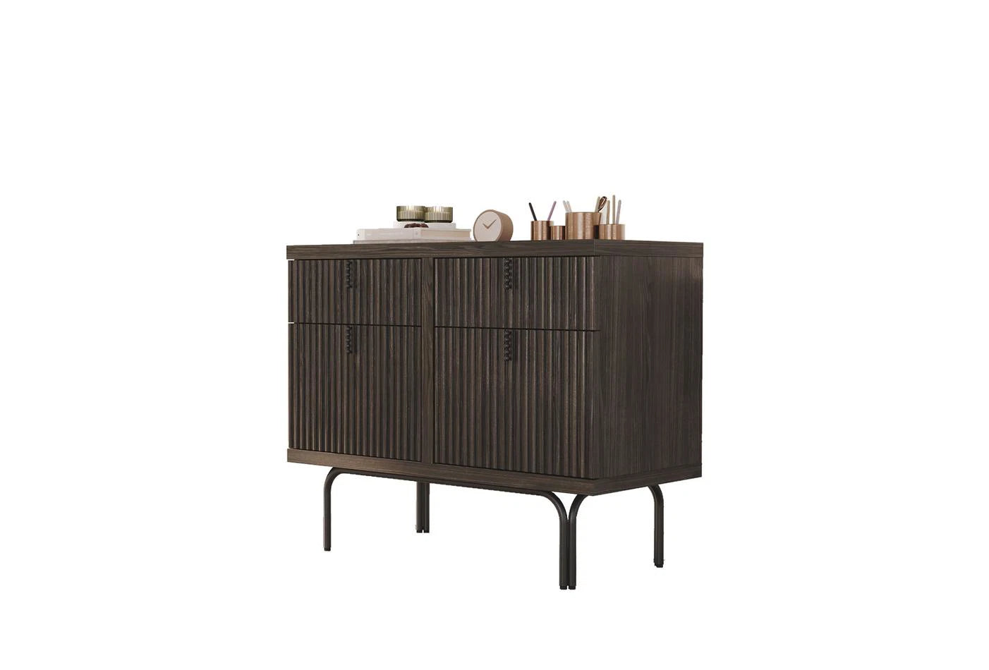 Съчетавайки елегантността на тъмния дъбов цвят с изящните черни метални дръжки, Austin отразява най-привлекателната форма на модерния дизайн. Със своята дъбова фурнирована повърхност върху MDF и бродирани детайли, които придават динамика на минималната дизайнерска линия, разкрива съвременната интерпретация на естетиката.