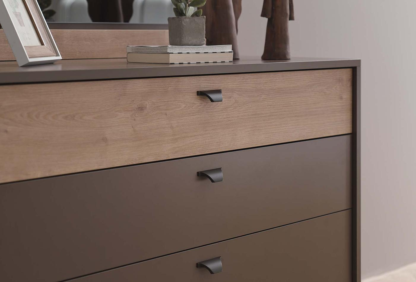 Със своя модерен стил се превръща в едно от най-естетичните парчета в колекцията си. Представен по ваш вкус с комбинация от цветове сиво и дъб.
