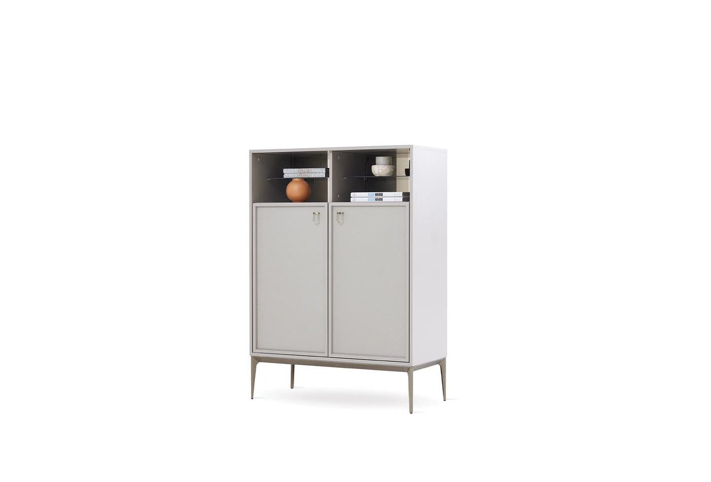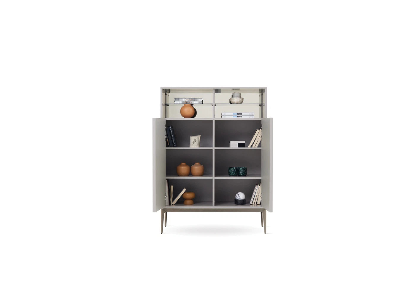 Страничният модул HERA умело съчета елегантност и функционалност в едно. Съвременният му дизайн, изпълнен със стъклени рафтове и натурални детайли с огледална повърхност, придава на всяко пространство чувство за лекота и широта.