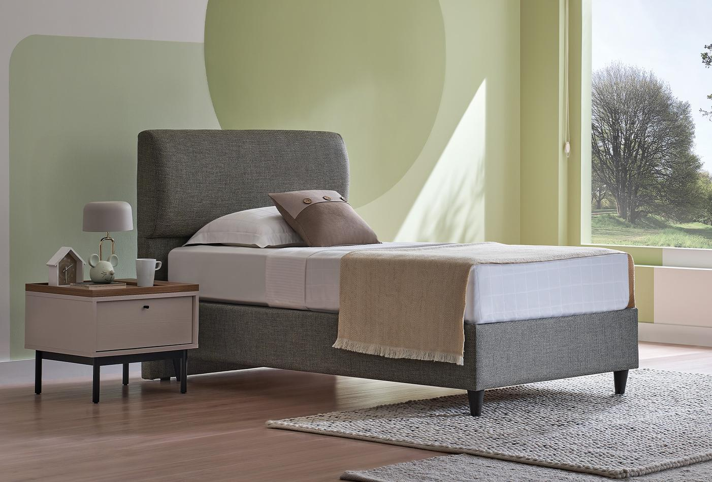 Таблата покрита с плат дава приоритет на комфорта, като в същото време създава разлика в спалните със своя модерен стил.
