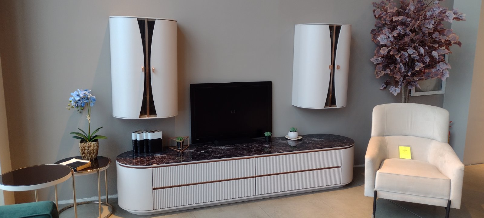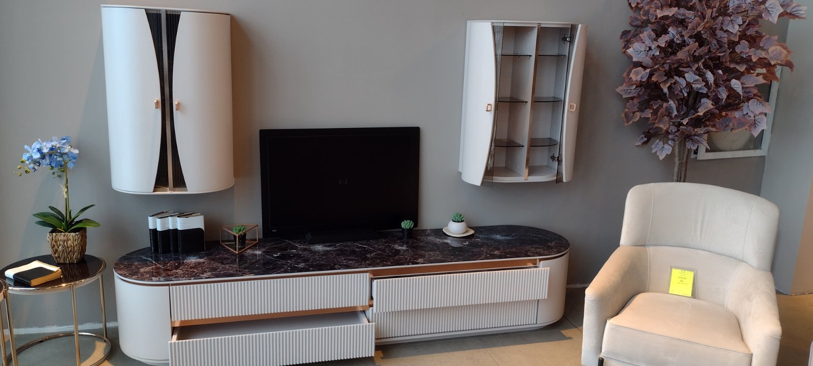 TV маса с място за съхранение без крака: Ширина: 242см / Височина: 46см / Дълбочина: 55см