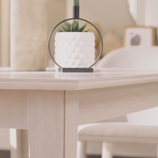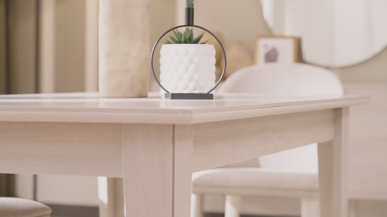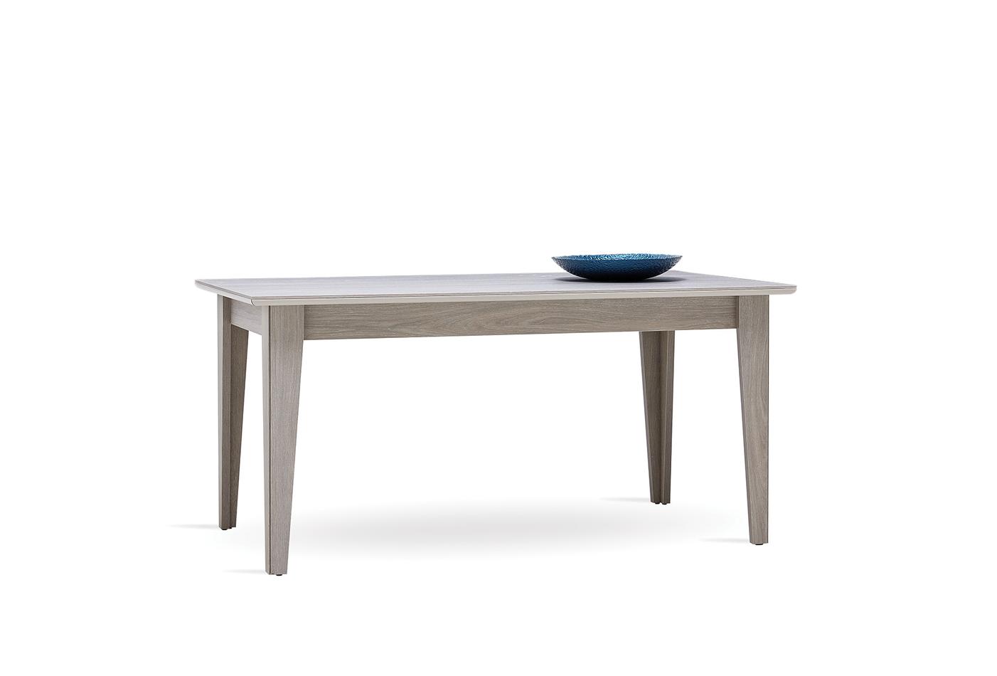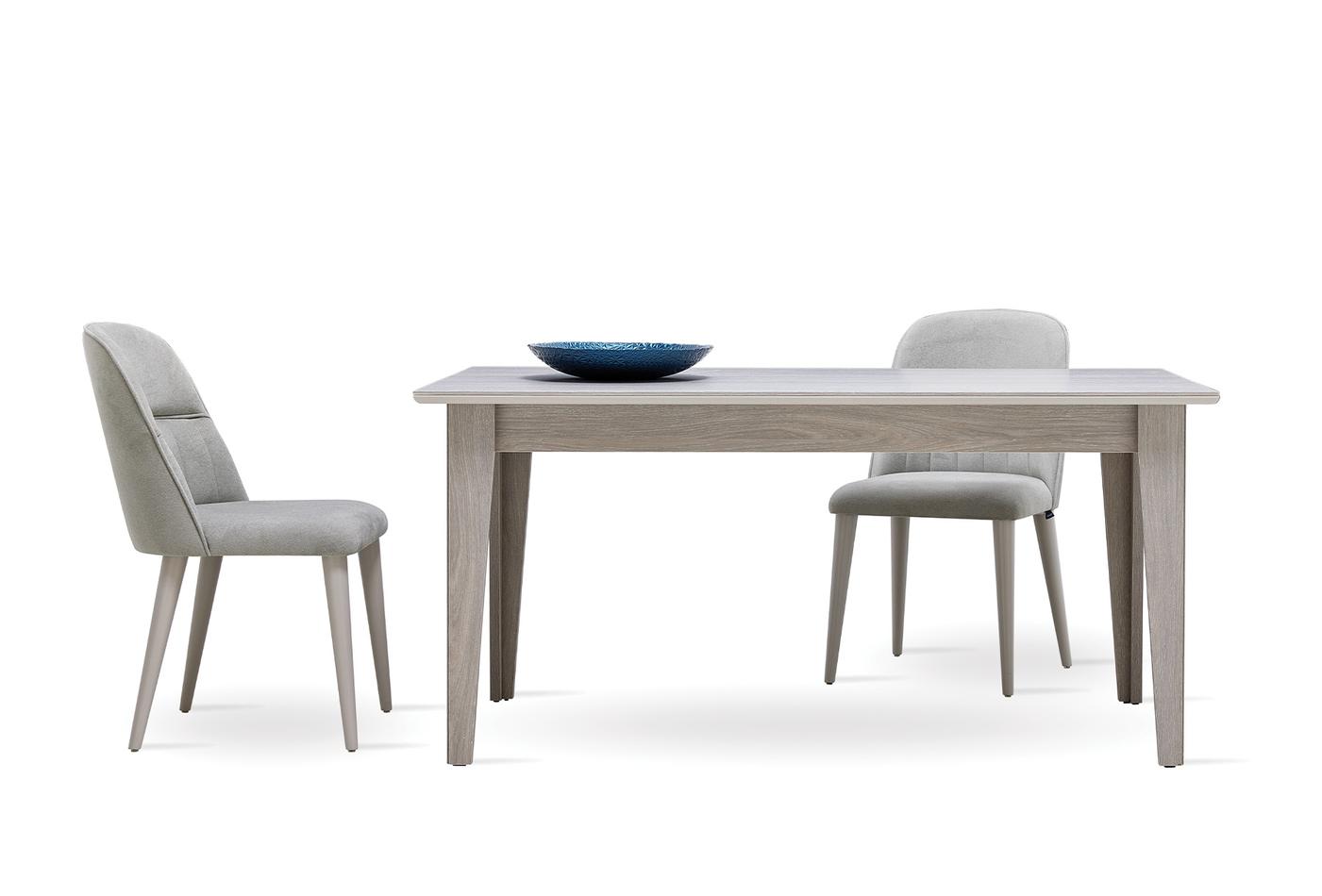 Със своята правоъгълна форма, която е отражение на нейния минималистичен дизайн, предлага пространство, където гостите могат да се настанят удобно с капацитет от 4-6 души. Цветова комбинация светъл дъб и бежово