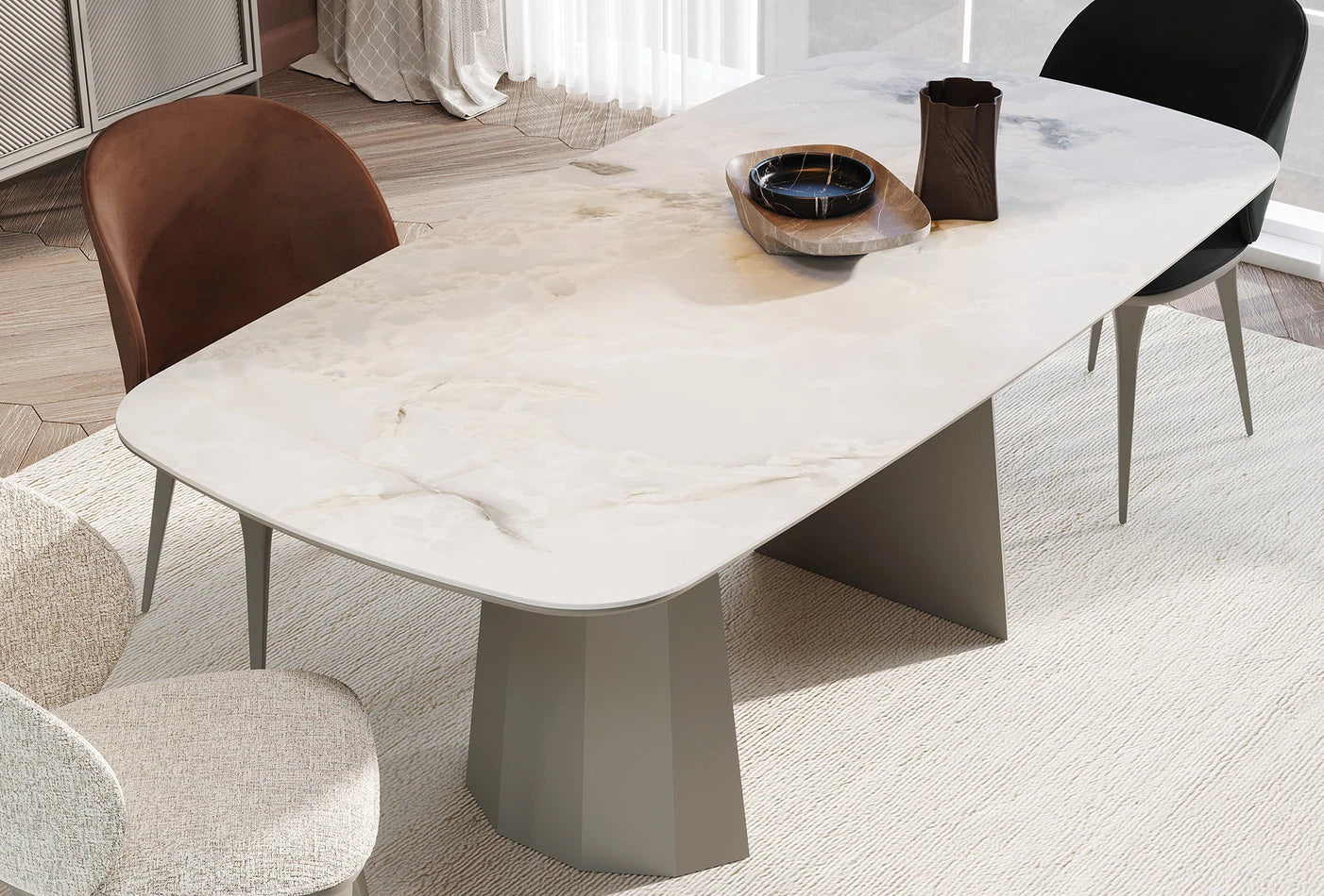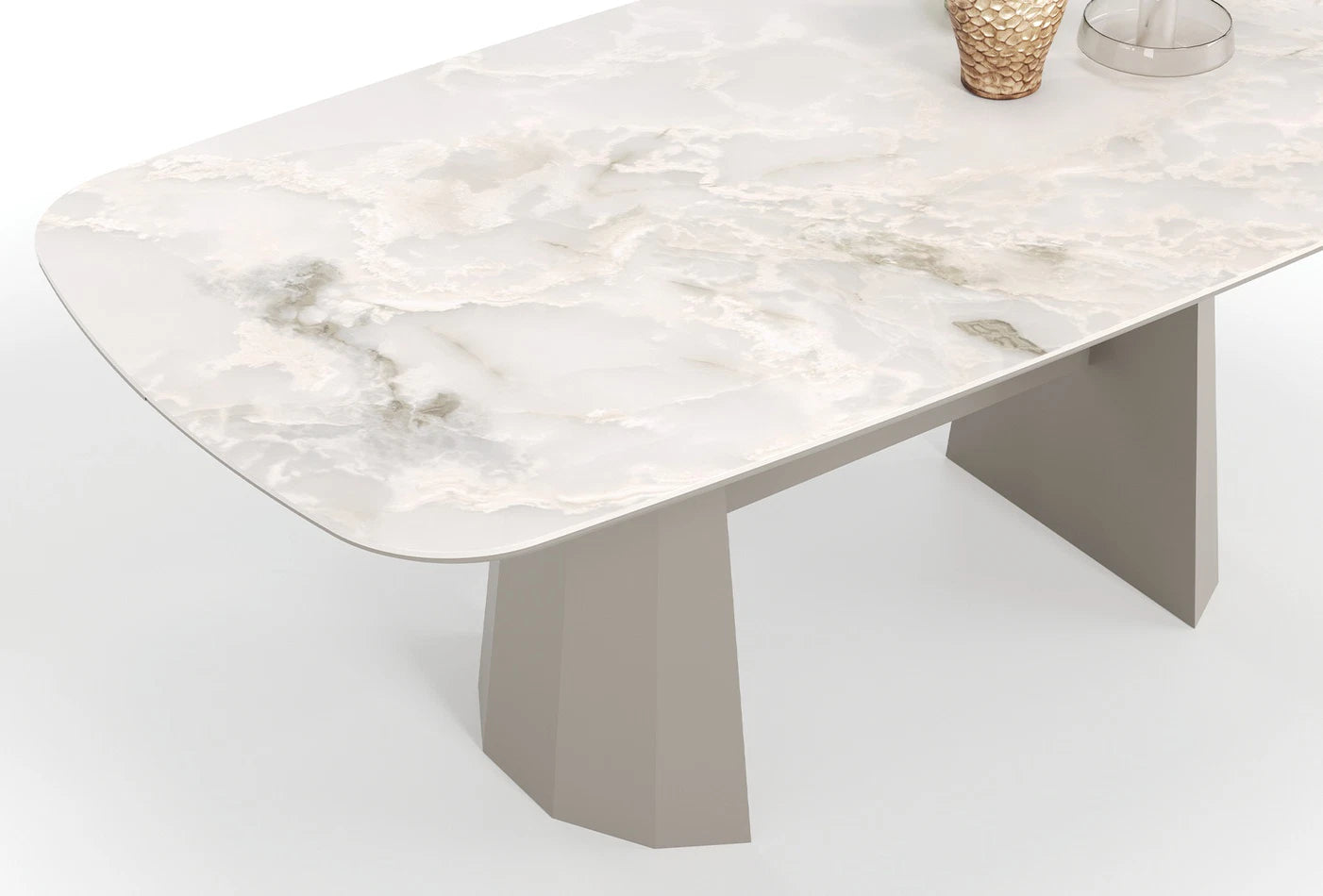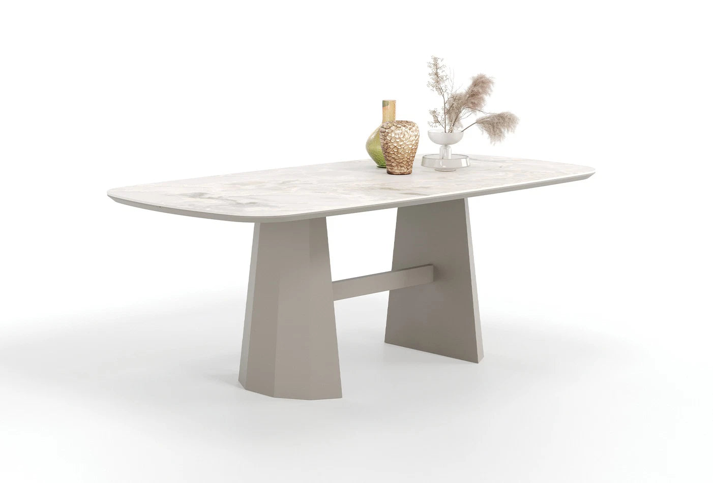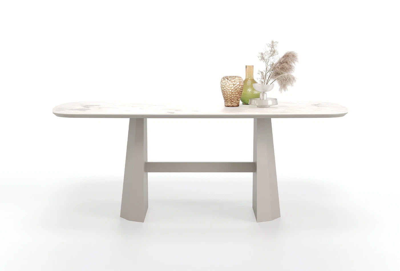 Изключително стилна и практична. Горната ѝ част има красив мраморен вид, а металните ѝ крака ѝ придават модерен и стабилен вид. С нежния си камъчен цвят изглежда елегантно и уютно едновременно. Тази маса е идеалното решение, ако искате да съчетаете полезност с добър вкус в интериора си. Тази маса ще се впише хармонично във всяко жилище, придавайки му специална характерност и интериорна цялостност.
