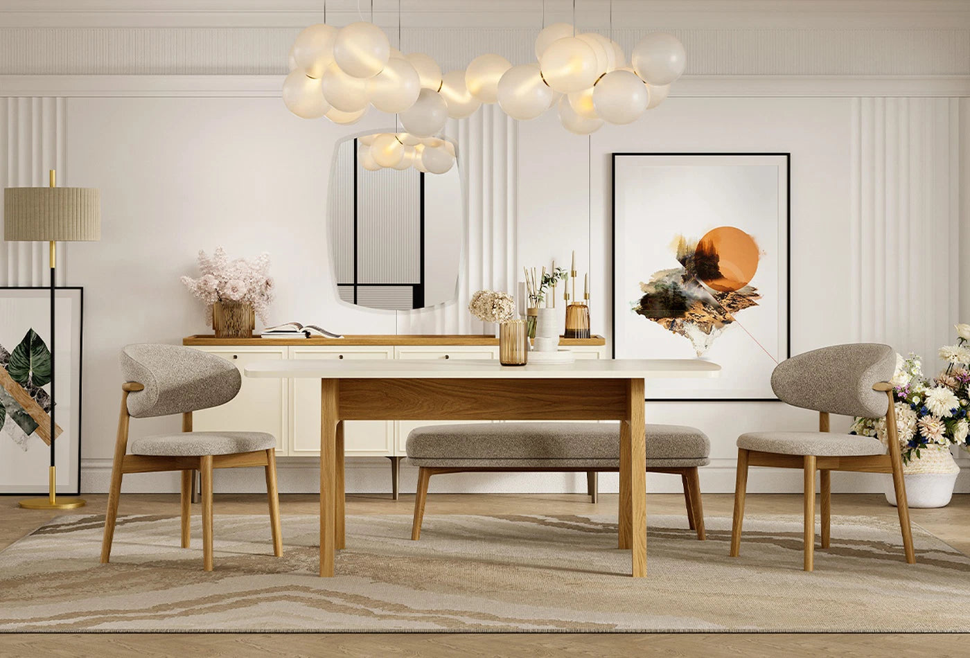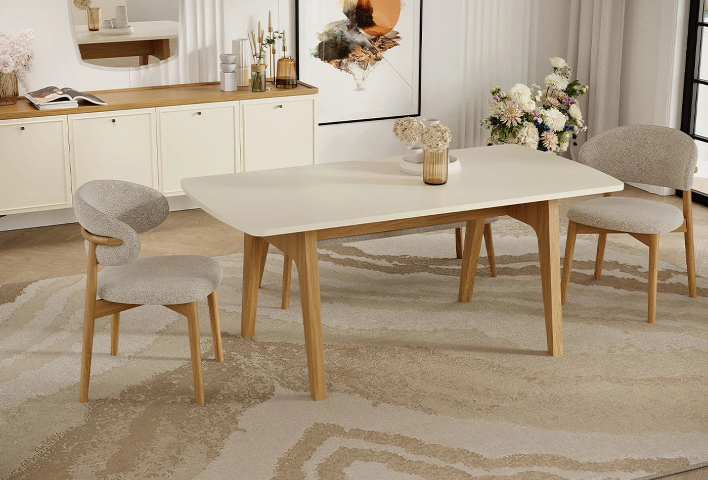 Маса MARSANA, вдъхновена от автентичния "country" стил, съчетава функционалност и естетика с естествени и модерни дървени детайли. Носи елегантен комфорт във всеки жилищен интериор.