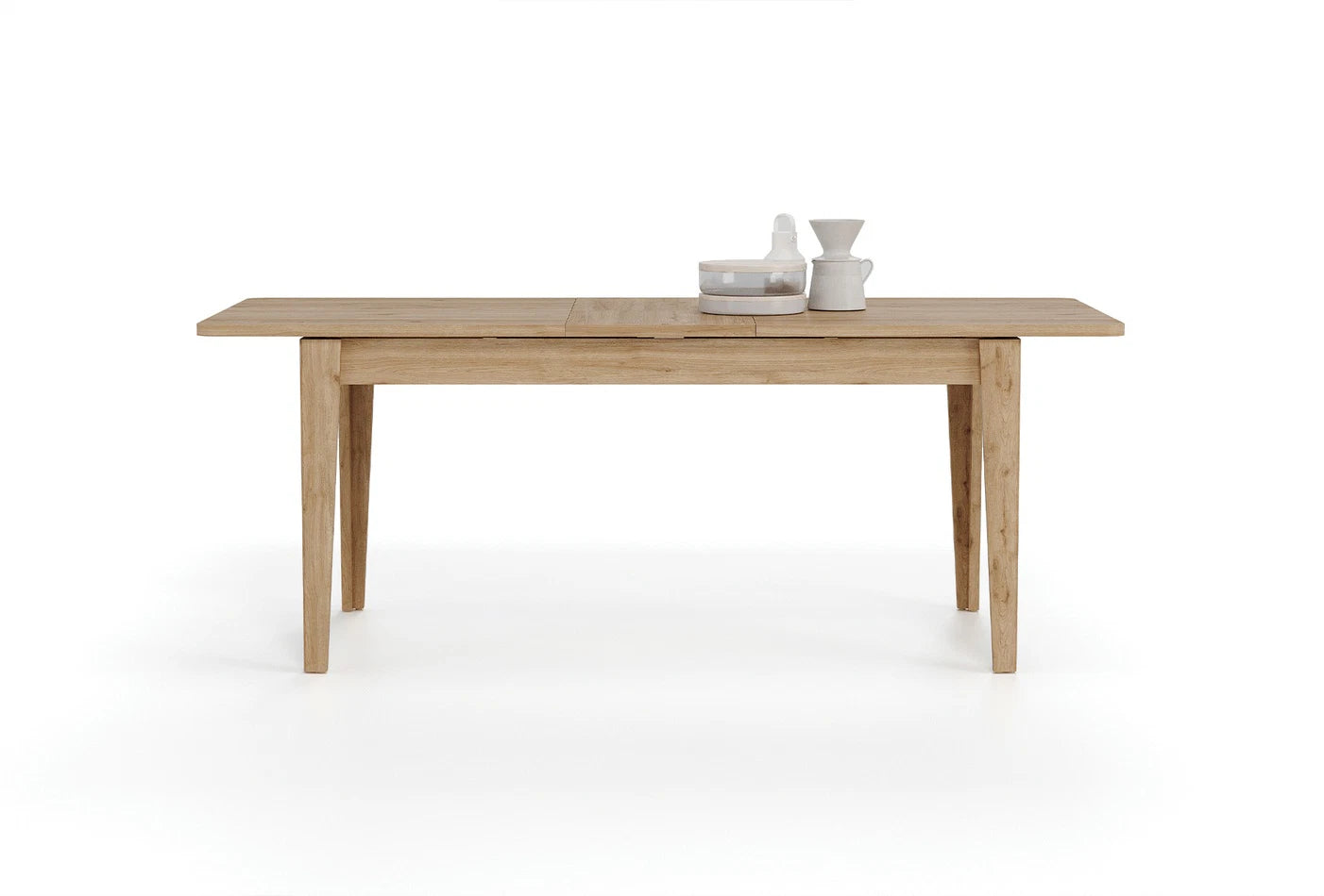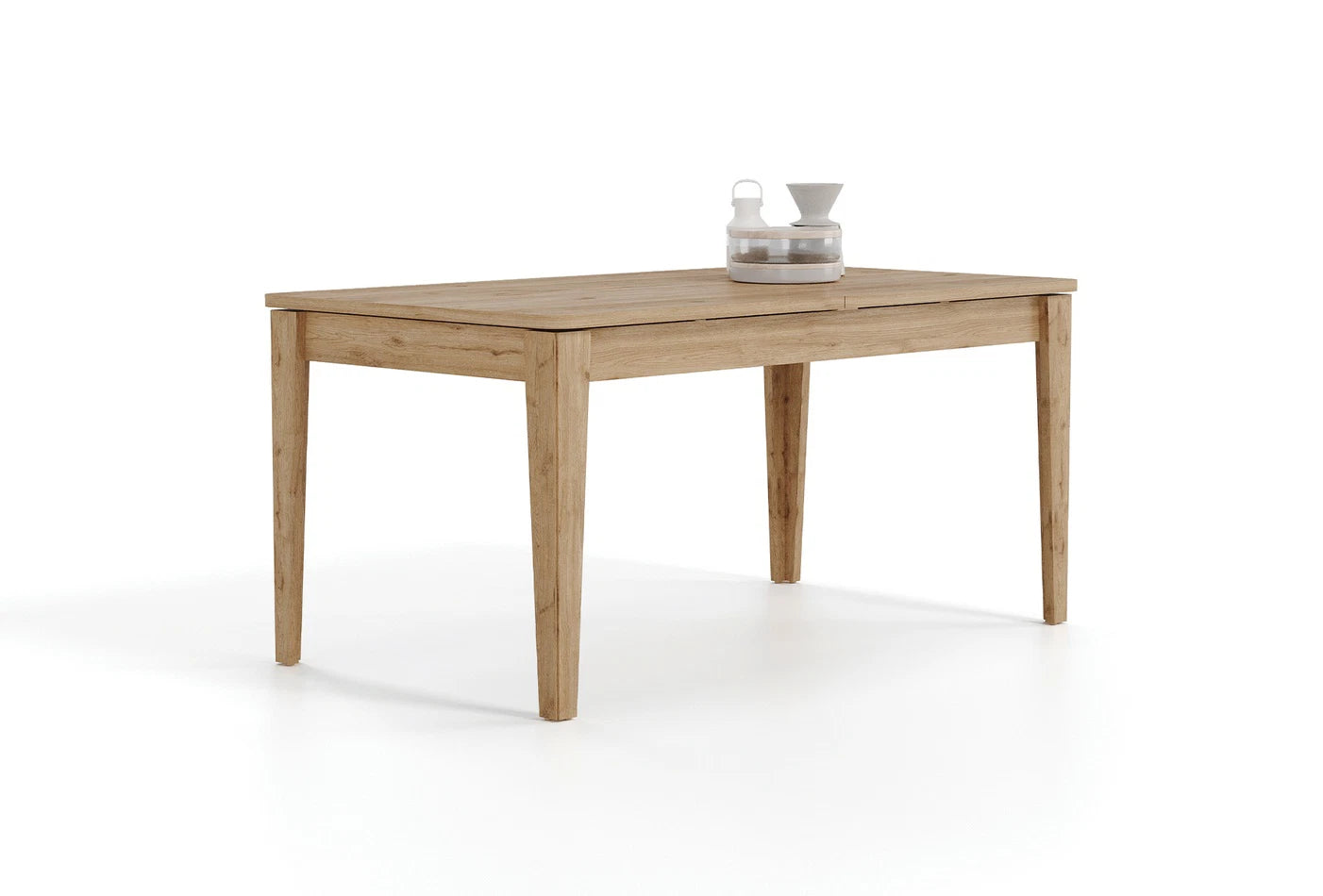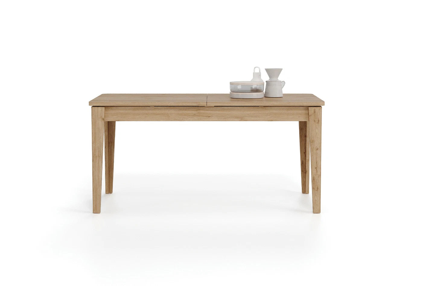 Вписва се във всяко пространство с елегантния си и функционален дизайн. Цветовата комбинация от естествен дъб и бежово създава топло усещане, като същевременно създава модерна атмосфера. Дървените крака подсилват естетическата цялост на масата и придават характер на интериора.