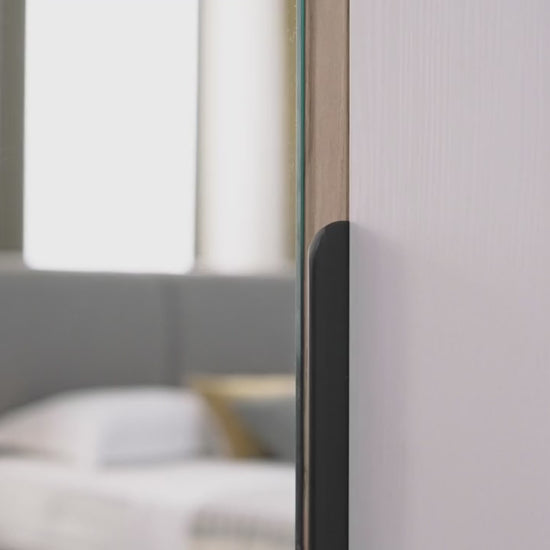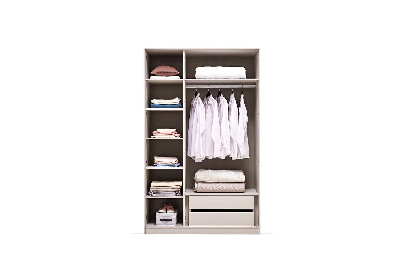 Перфектното цветово съчетание и текстурите на различните елементи, в комбинация с огледалото от закалено стъкло в гардероба придават усещане за пространство във Вашата спалня. А зад вратите се открива завидно място за съхранение с функционало разпределение.