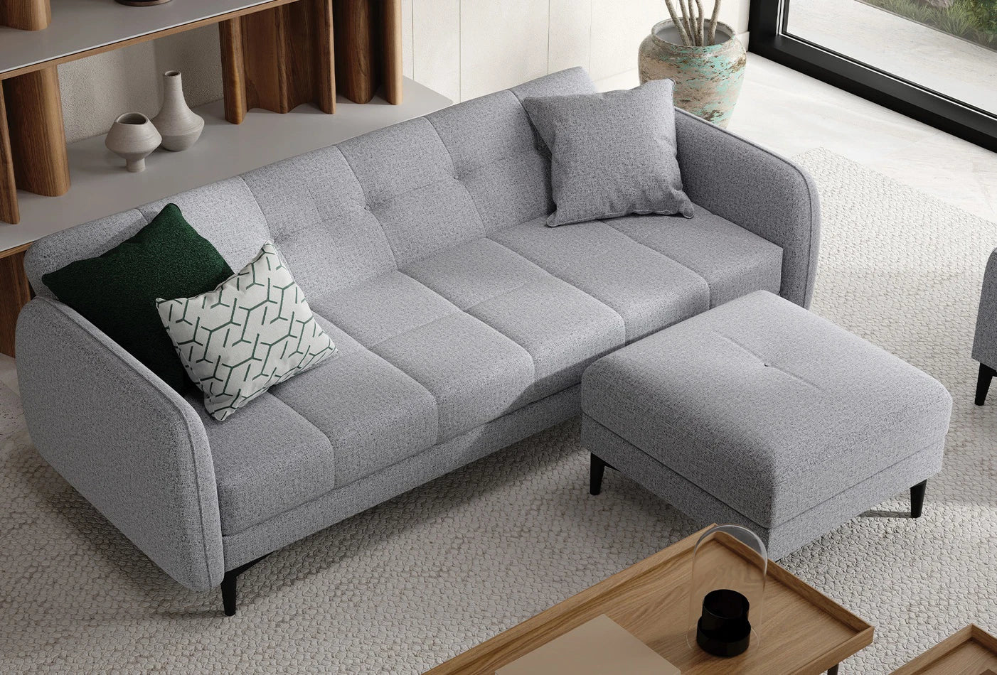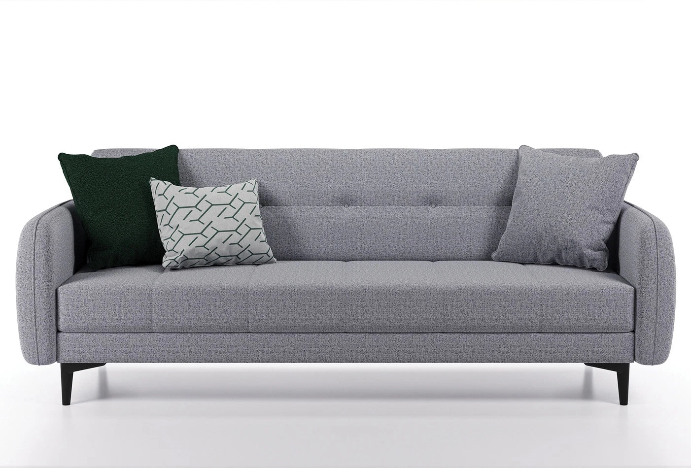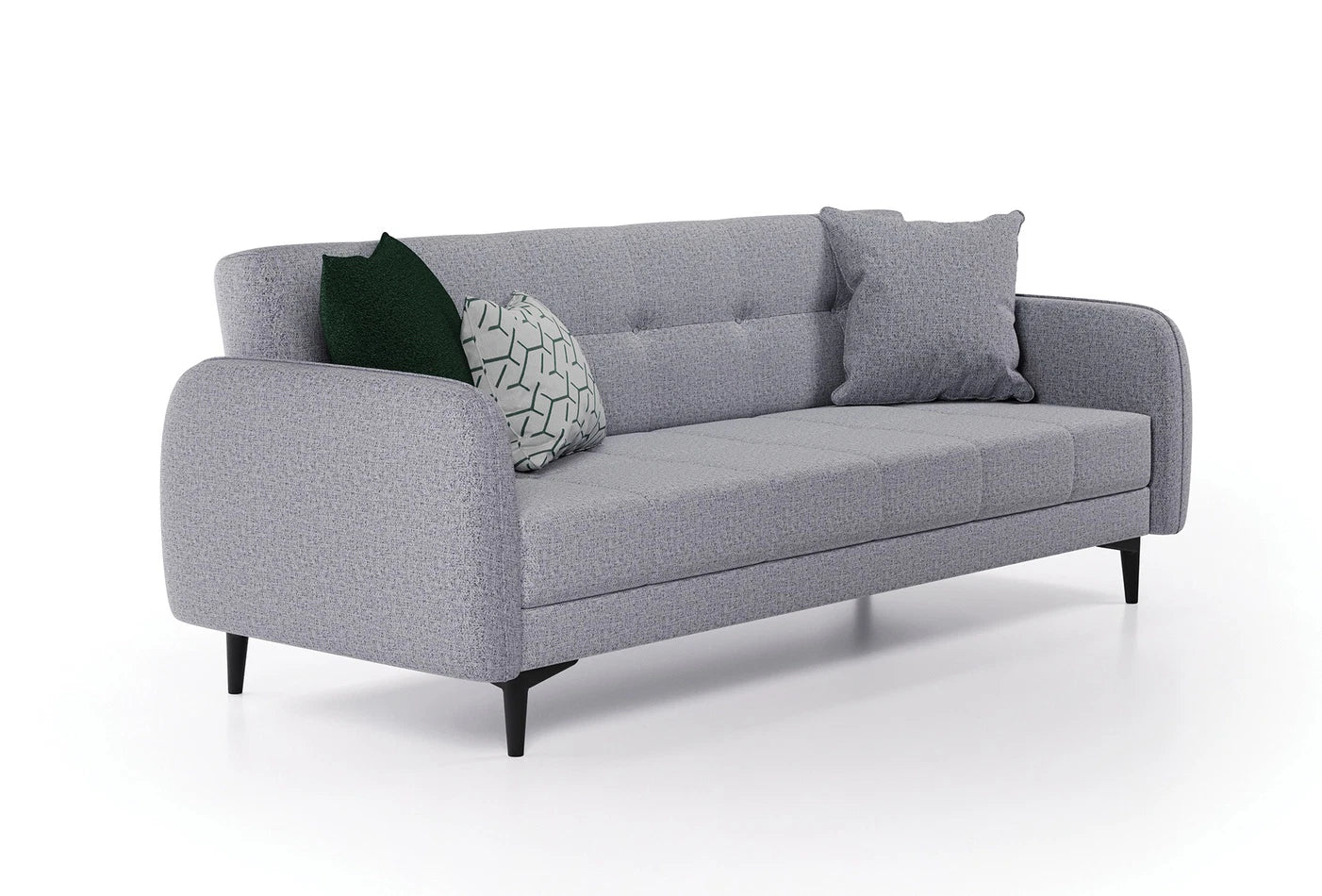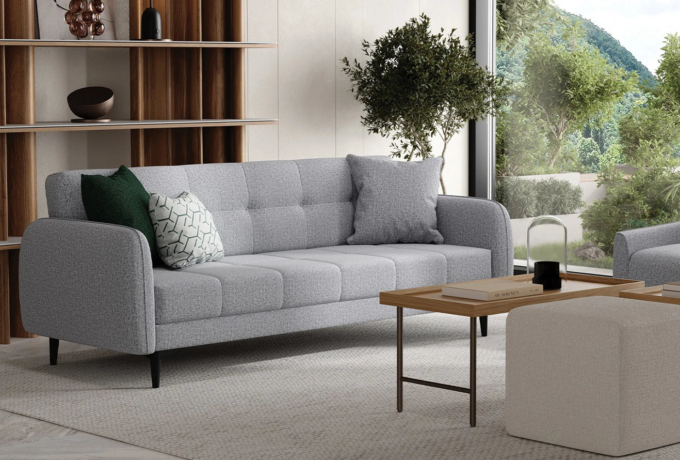 Триместният разтегателен диван Romina впечатлява с модерен дизайн и практичност. Включва три декоративни възглавници и осигурява дълготраен комфорт. Благодарение на лесната за почистване дамаска и високите крака, почистването е бързо и удобно. Със стилния си външен вид Romina добавя едновременно уют и елегантност във вашия дом.