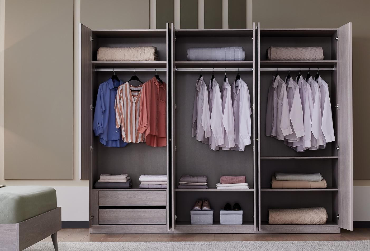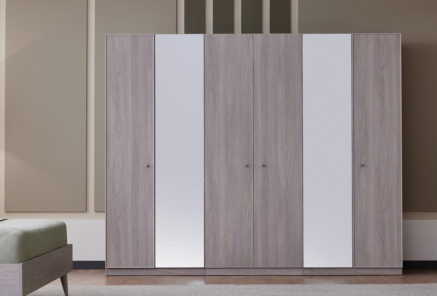 Отличаващ се с минималистичен дизайн добавя модерен щрих, като придава светъл и приветлив вид на пространствата, в които се намира. Проектиран в комбинация от светъл дъб и светло бежово. Огледална апликация в естествен цвят върху вратата на шкафа. Внесена система на панти със самозабавяне. Стилен интериор с просторни и удобни места за съхранение.