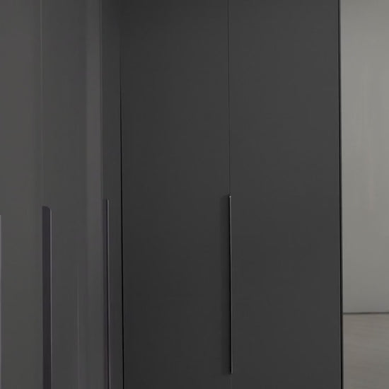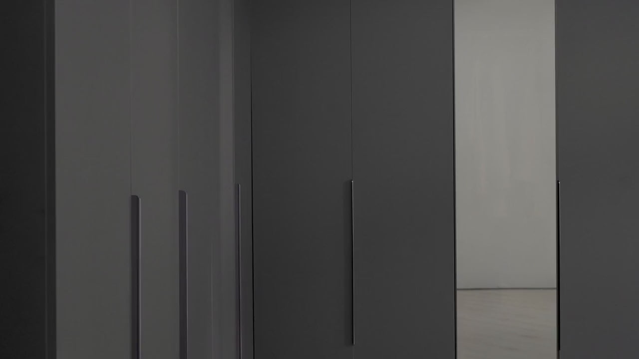 Подчертавайки монохромния стил, който често се предпочита в декорацията на дома, серията подчертава елегантността с дългите си лъскави метални дръжки и матово черна повърхност и обещава функционална употреба с големите си места за съхранение.