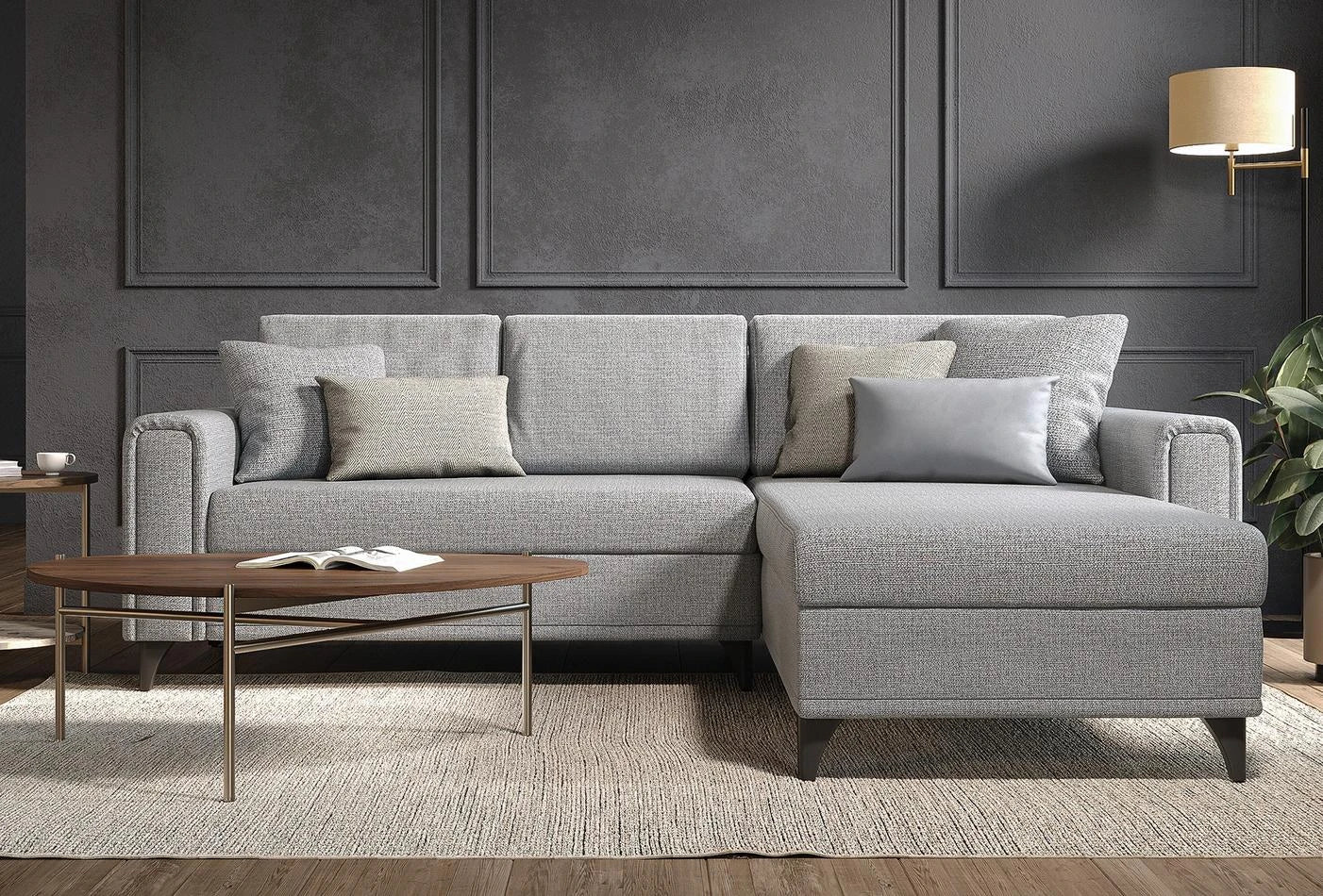 Ъгловият диван може лесно да се превърне в голямо легло, също така предлага допълнително пространство за съхранение .