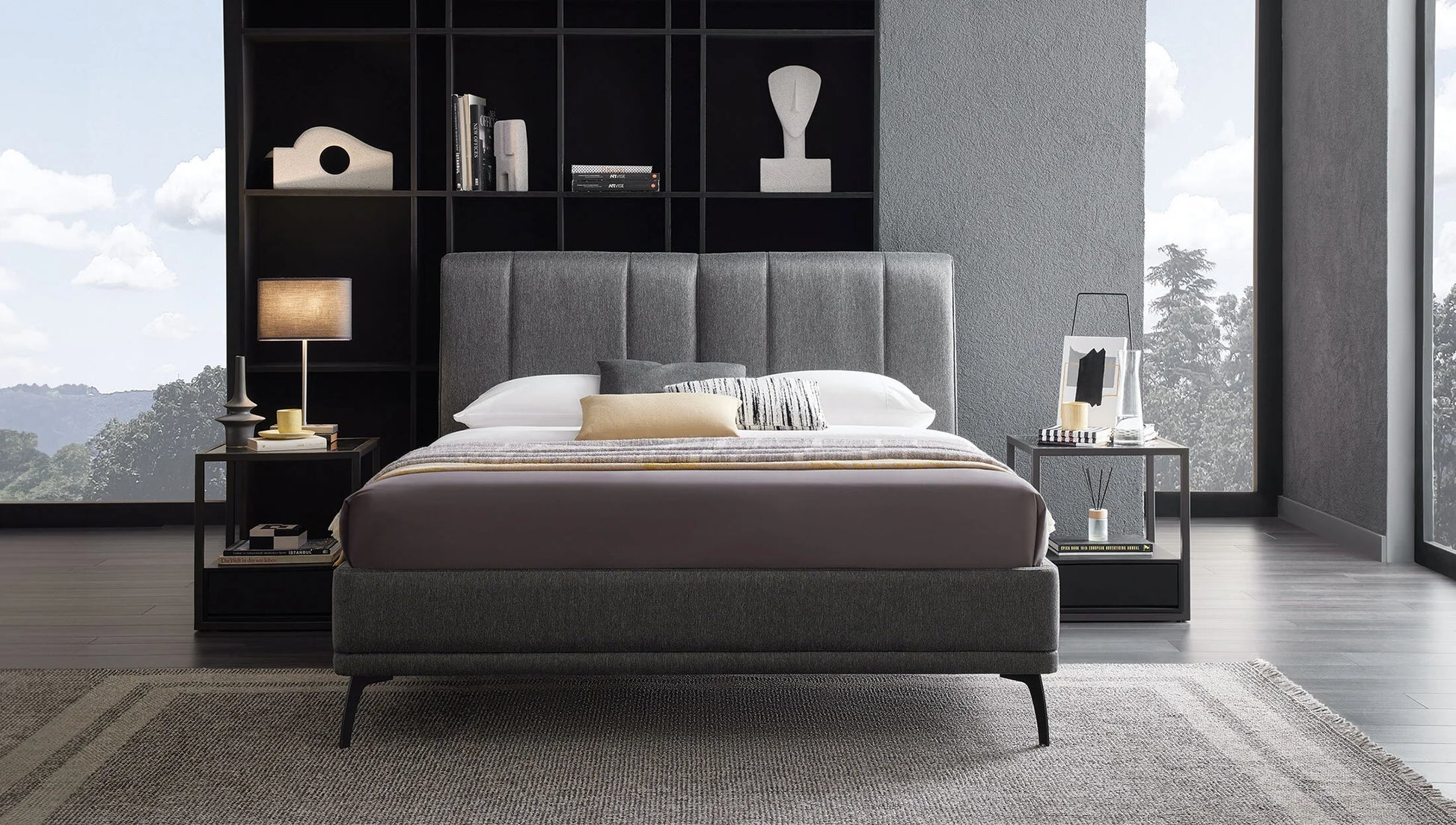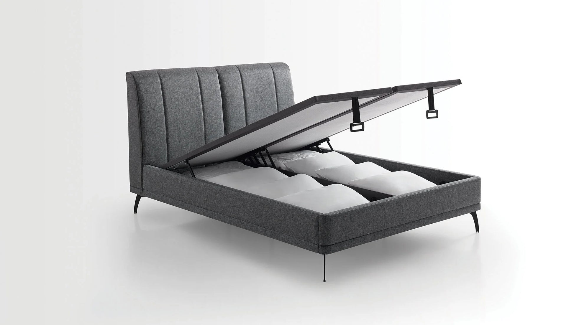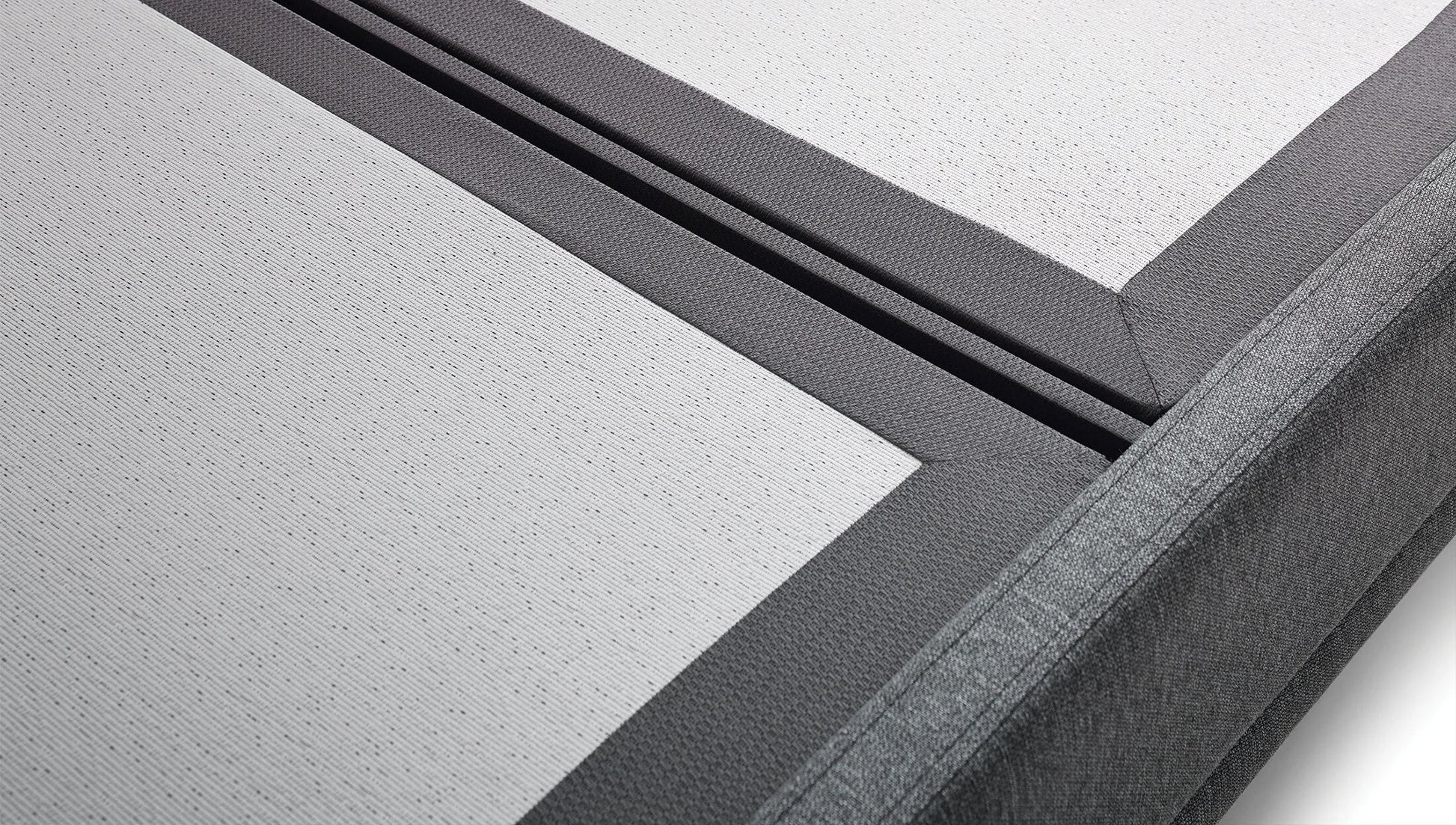 Базата за легло Black Ice има стилен външен вид със семплия си дизайн, съвместим с таблата и високите крака от черен метал. Има функционална употреба благодарение на големия си вътрешен обем. С широката си гама от материи и цветови варианти тя предоставя богат избор за различните спални.