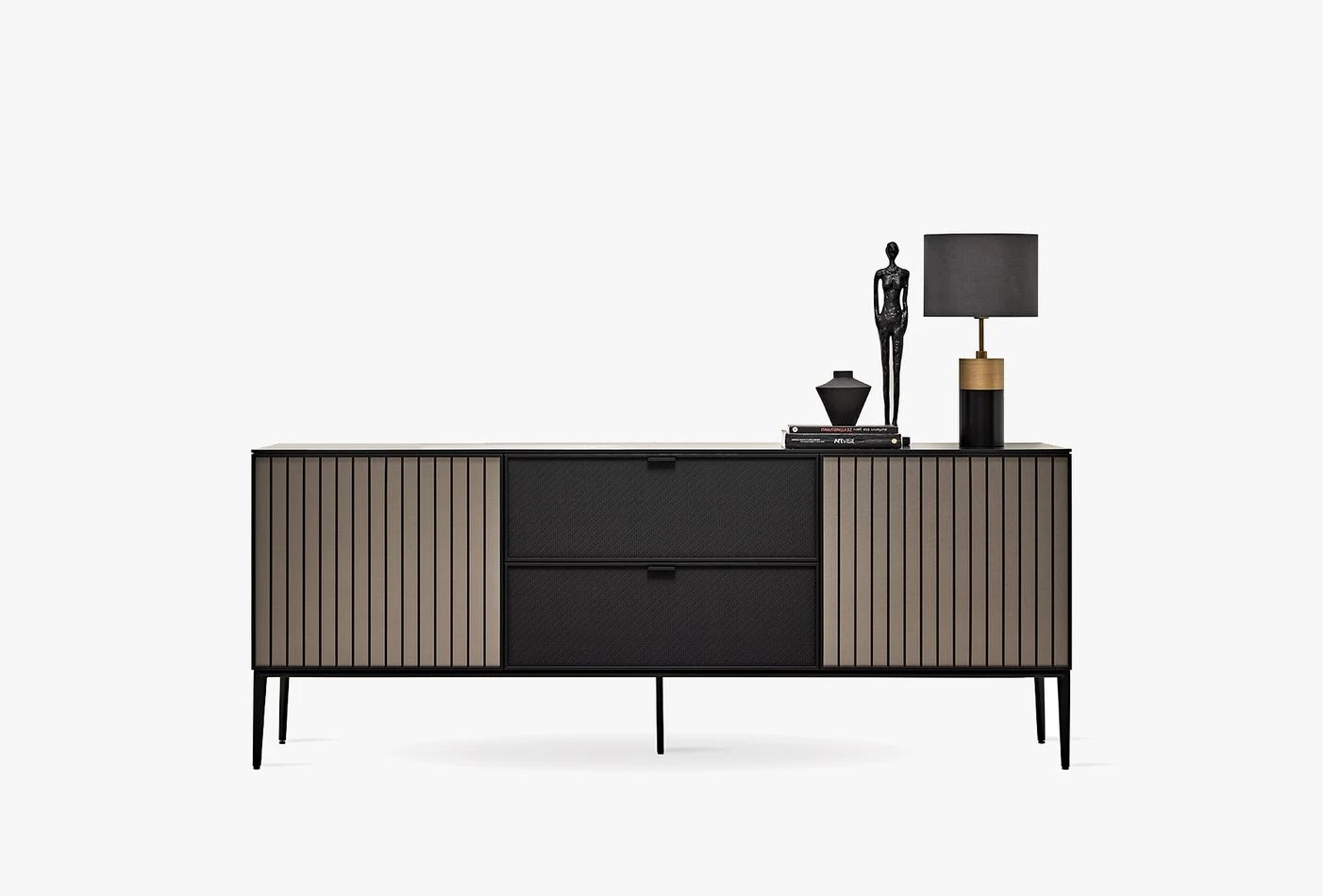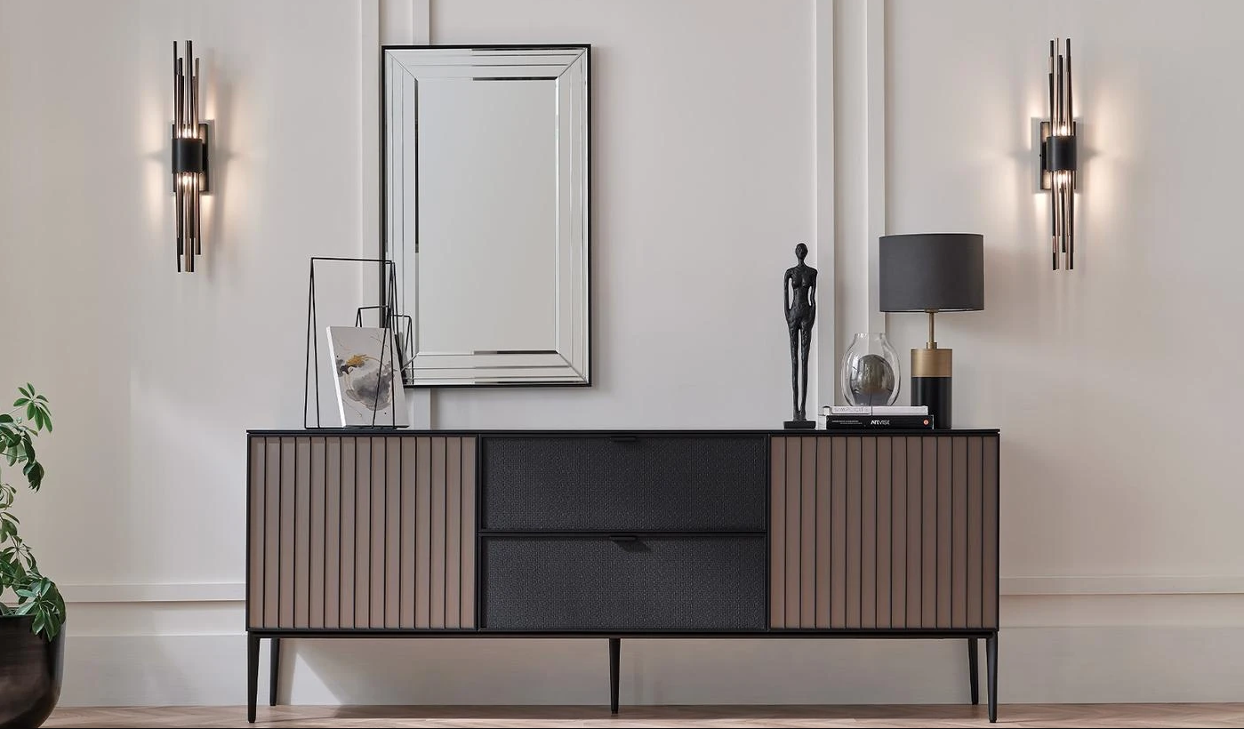 · Метален вид и черен линеен дизайн на вратите