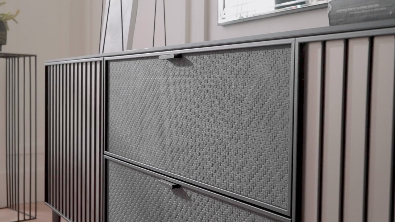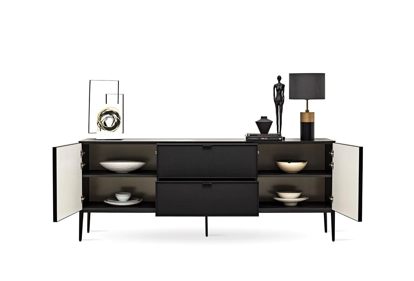 · Апликация на черна профилна рамка на 2 броя чекмеджета и врати