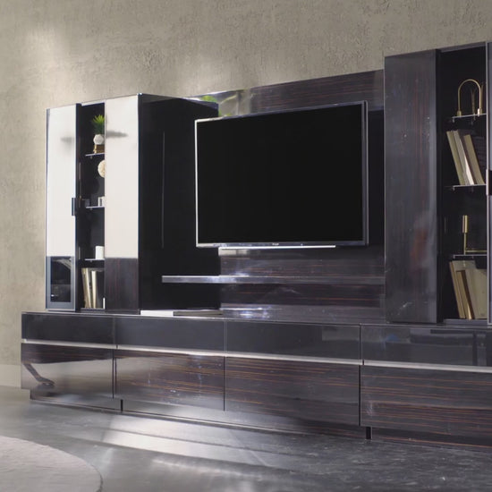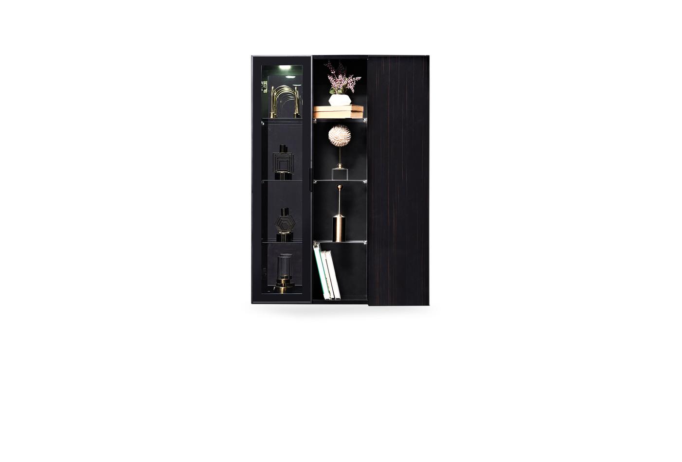 Предлага практична употреба, която ще се хареса на всичките ви нужди с тройното си отделение и четириетажен рафтов дизайн. Модулът, който е създаден с помощта на цвят абанос, специфичен за серията, показва качествена позиция със своята структура. Добавя различна атмосфера към вашия дом със своя дизайн от стъкло и дърво.