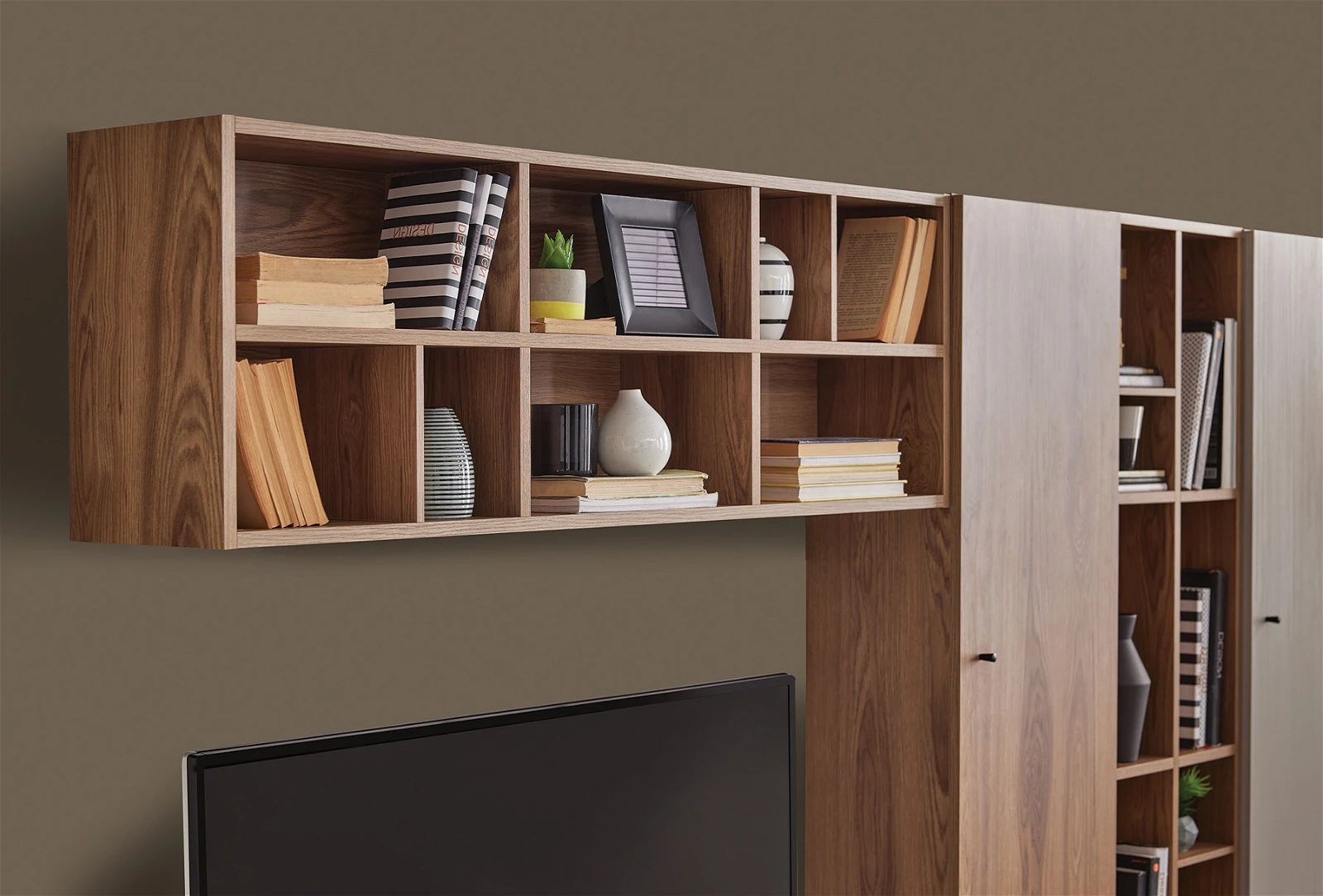 Придава топлина на жилищните помещения със своя цвят светъл орех. Осигурява допълнително място за съхранение с широките си рафтове.